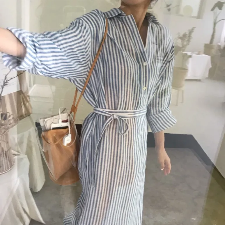 Летнее платье 2019 Yuzi.may Бохо новые джинсовые женские платья с воротником стойкой