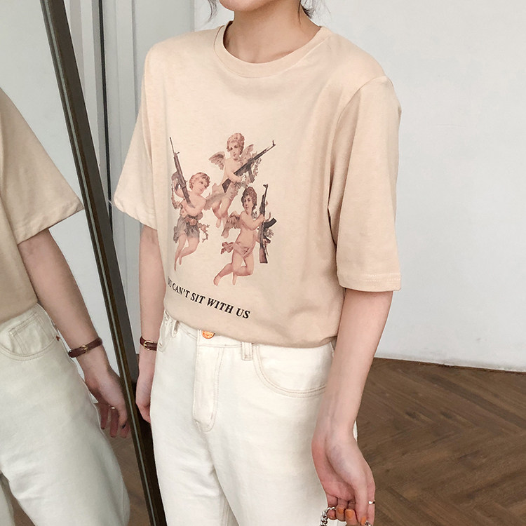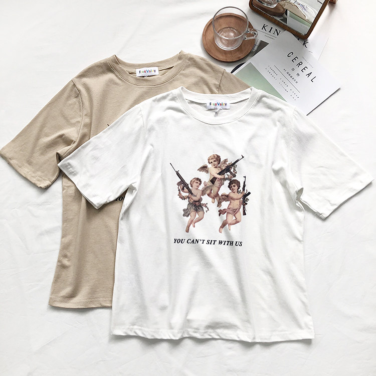 2 цвета летние топы 2019 корейский стиль мультфильм Письмо печати короткий рукав футболки женская футболка рубашка femme
