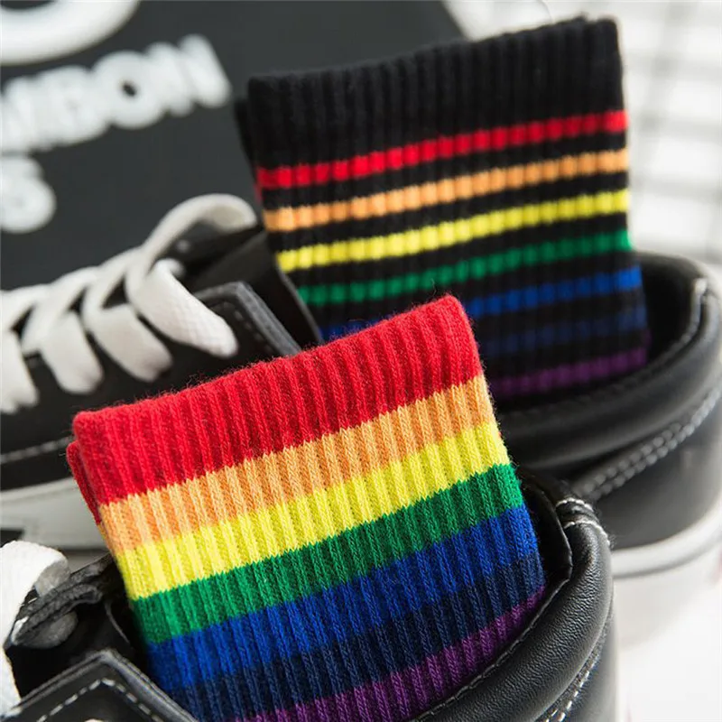 Женские и мужские носки, зимние хлопковые носки унисекс в радужную полоску, модные теплые рождественские спортивные дышащие носки M1, 2019