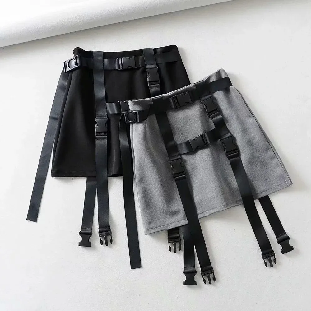 Летняя новая панк юбка трапециевидной формы с пряжкой на ремешке Повседневная