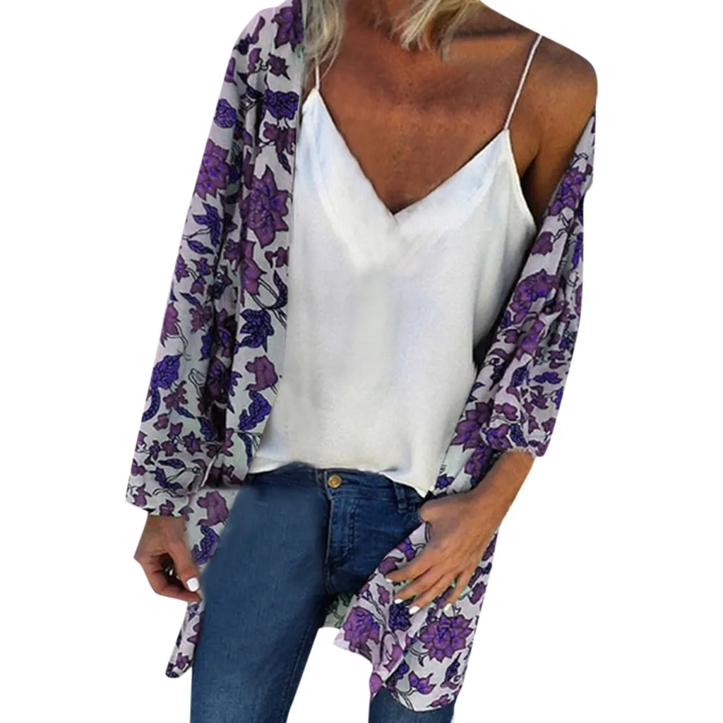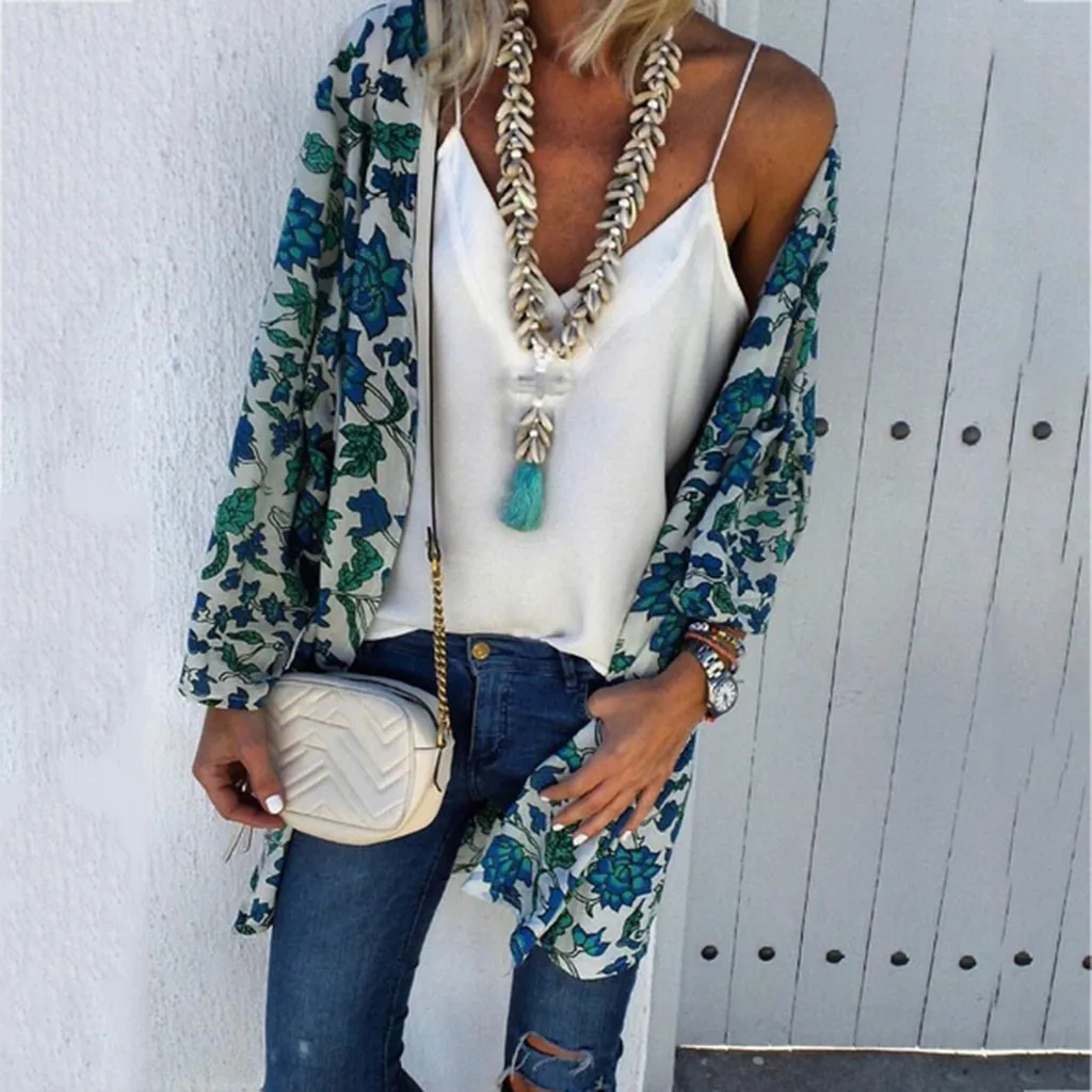 Женский модный Свободный Летний кардиган с цветочным принтом и длинными рукавами