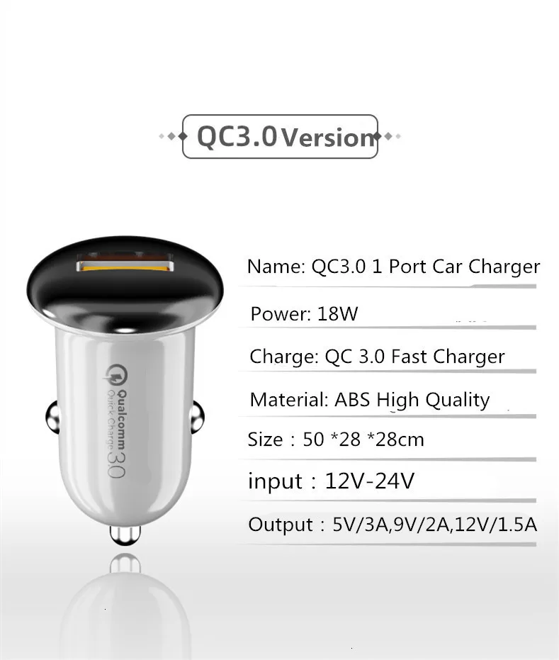 1. Автомобильное зарядное устройство QC 3,0 3A с одним портом
