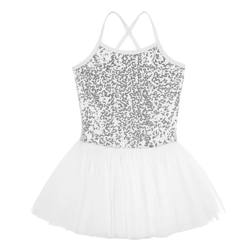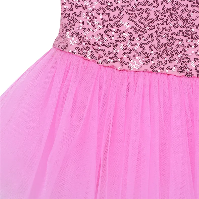 Красивое сказочное балетное платье-пачка без рукавов с блестками для девочек.