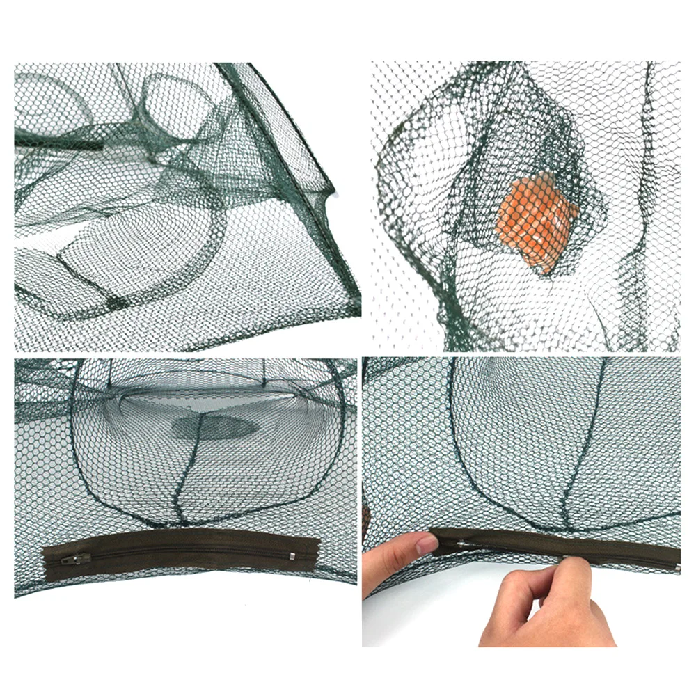 Рыболовная сеть легко складывается, удобна в использовании, просто потяните веревку к верху, и сеть автоматически открывается. Подходит для соленой воды и пресной воды, для ловли раков, кальмаров, крабов, креветок и так далее.