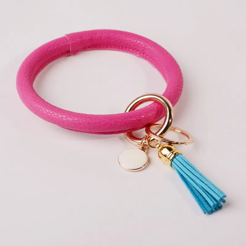 Новая мода ретро большая кожаная одежда на запястье кольцо для ключей из сплава кулон Флокирование брелок для ключей с кисточкой унисекс ювелирные изделия Bijoux Pet веревка Пряжка KCN1252