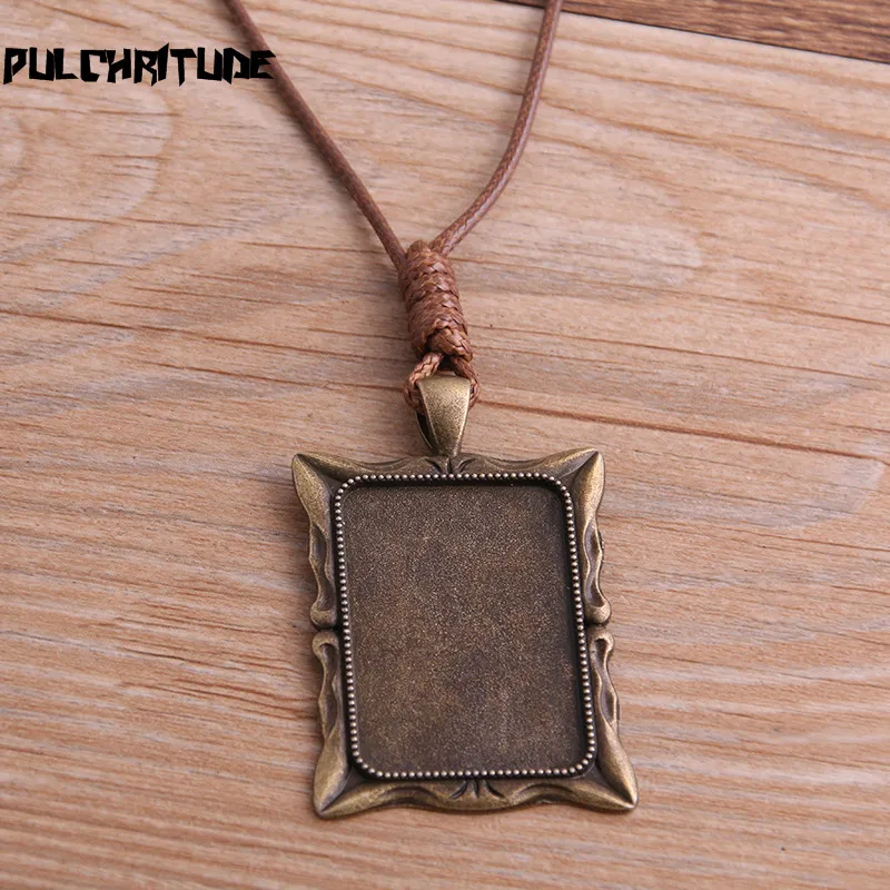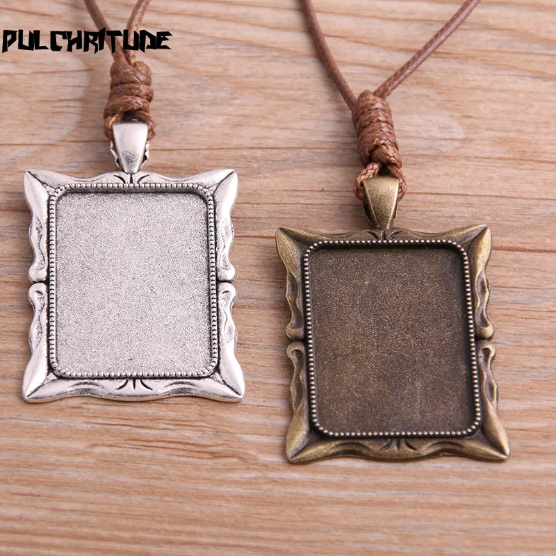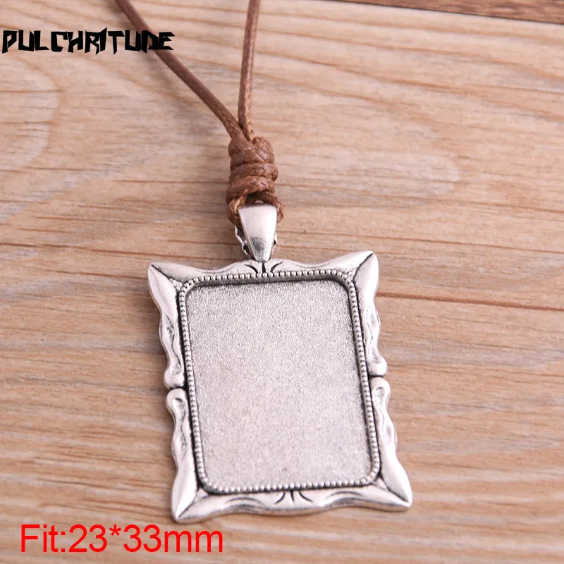 2 шт цинковый сплав два цвета 23*33 мм квадратный Кабошон Настройки пустая Камея основа подвески Лотки с кожаным шнуром для изготовления ювелирных изделий