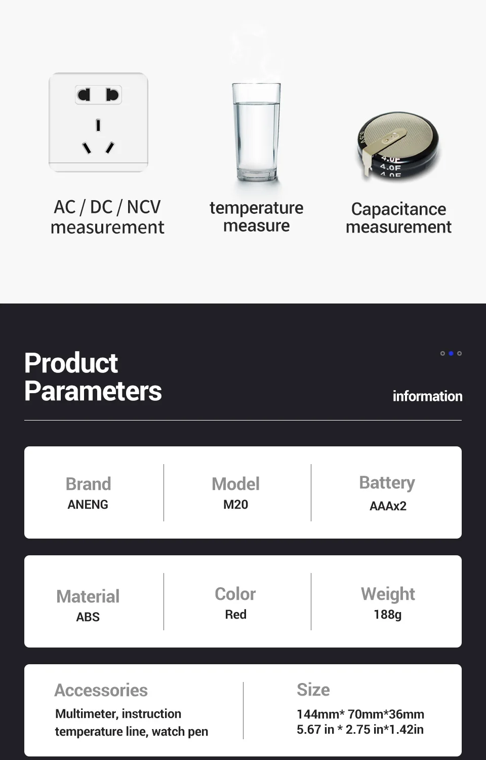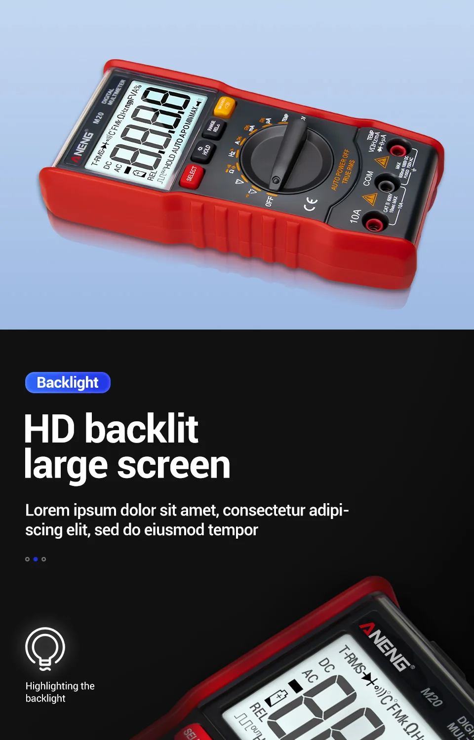 M20 True-RMS цифровой мультиметр Авто Диапазон 6000 отсчетов с подсветкой AC/DC Амперметр Вольтметр Ом Транзистор тестер мульти метр
