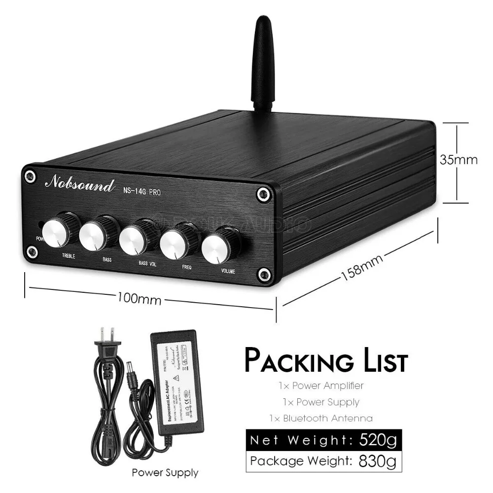 NS-14G PRO 2,1 канальный усилитель мощности, с высокими частотами и бас независимым управлением, сабвуфер, регулировка частоты колебаний и бас регулятор громкости. Максимальная выходная мощность может достигать 50 Вт * 2 + 100 Вт, достаточно для большинства домашних книжных полок/компьютеров/Настольных динамиков.
