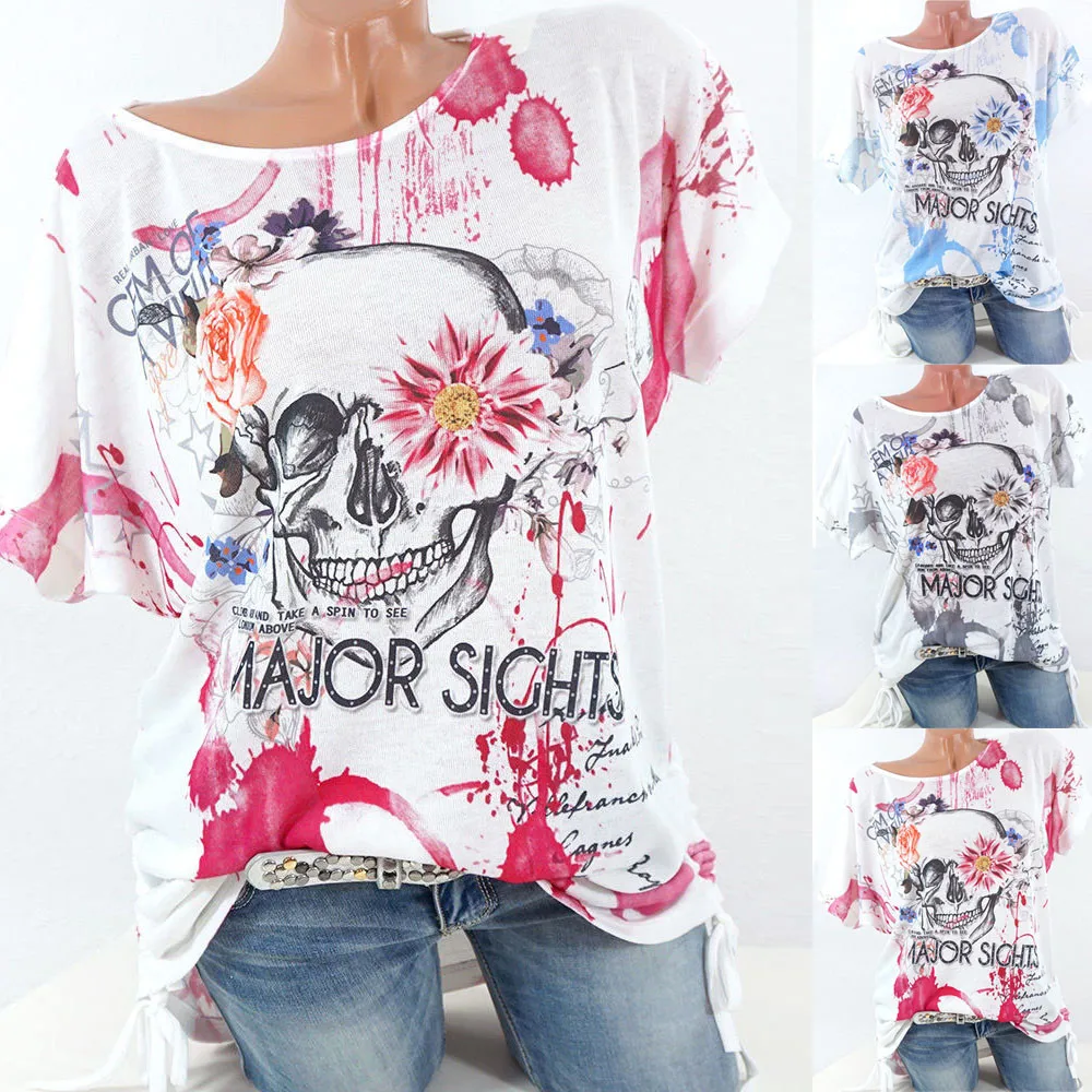 Женская блузка с коротким рукавом и принтом черепа, Повседневная Свободная рубашка, топы Футболка