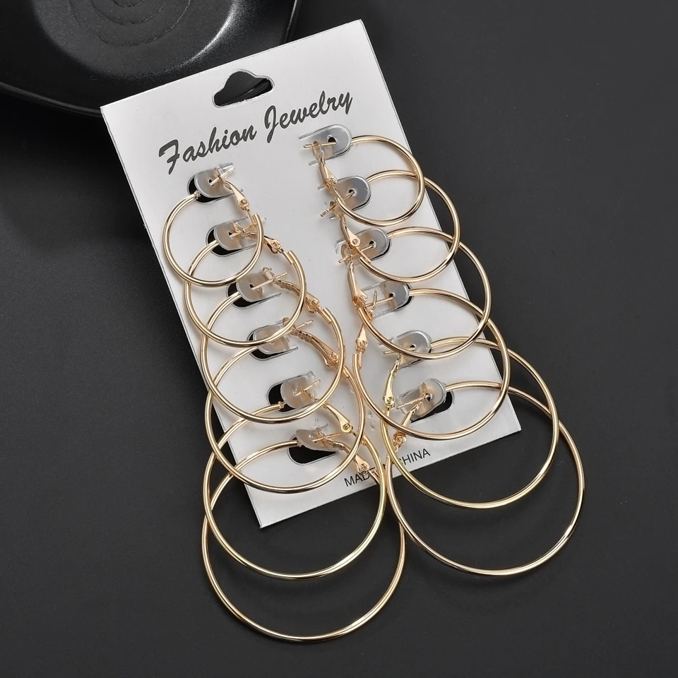 25-50 мм большое кольцо серьги цвет персонализированные серьги аксессуары модные сексуальные преувеличенные круглые серьги дамский набор 6 пар