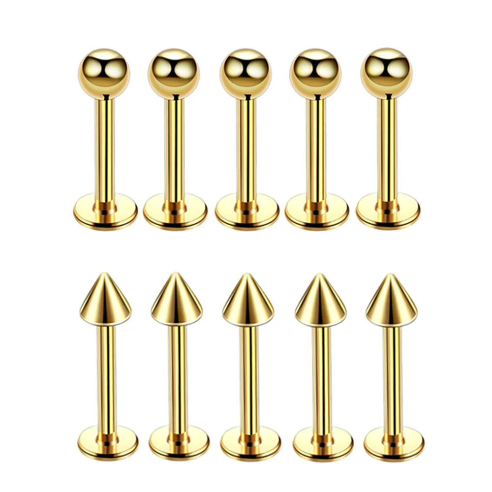 Кольцо для пирсинга губ Labret, 5 шт./лот, 16 г, хирургическая сталь, золотые серьги-хрящи для губ, пирсинг, ювелирные изделия для тела, сексуальные женские аксессуары
