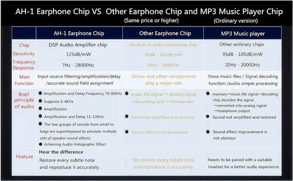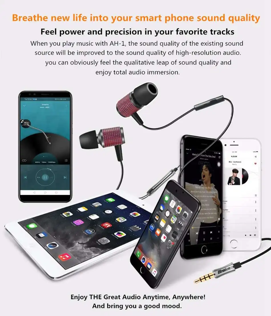 ● Binai AH-1 является первым акустическим голографическим наушником, самостоятельно разработанным пассивным DSP аудио обработкой-аудио голографическим чипом, восстановите оригинальную частоту звука, чтобы обеспечить высокое качество звука под не-плеером, эффективно увеличивает/восстанавливает все тонкие звуки, делая все звуки более выразительными и четкими.