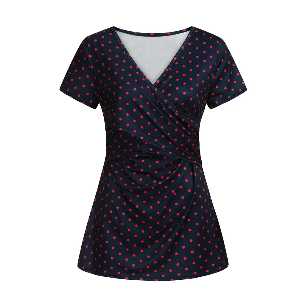 Женский удобный топ в горошек с коротким рукавом для кормления грудью