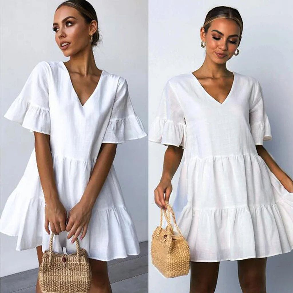 Летнее женское модное повседневное однотонное Короткое мини-платье без рукавов с v-образным вырезом