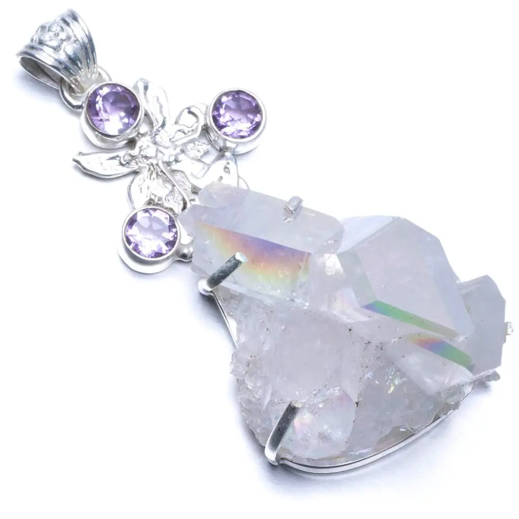 Натуральный огромный угол аура кварц и аметист 925 пробы серебряный кулон 2 1/2 " ; PS013