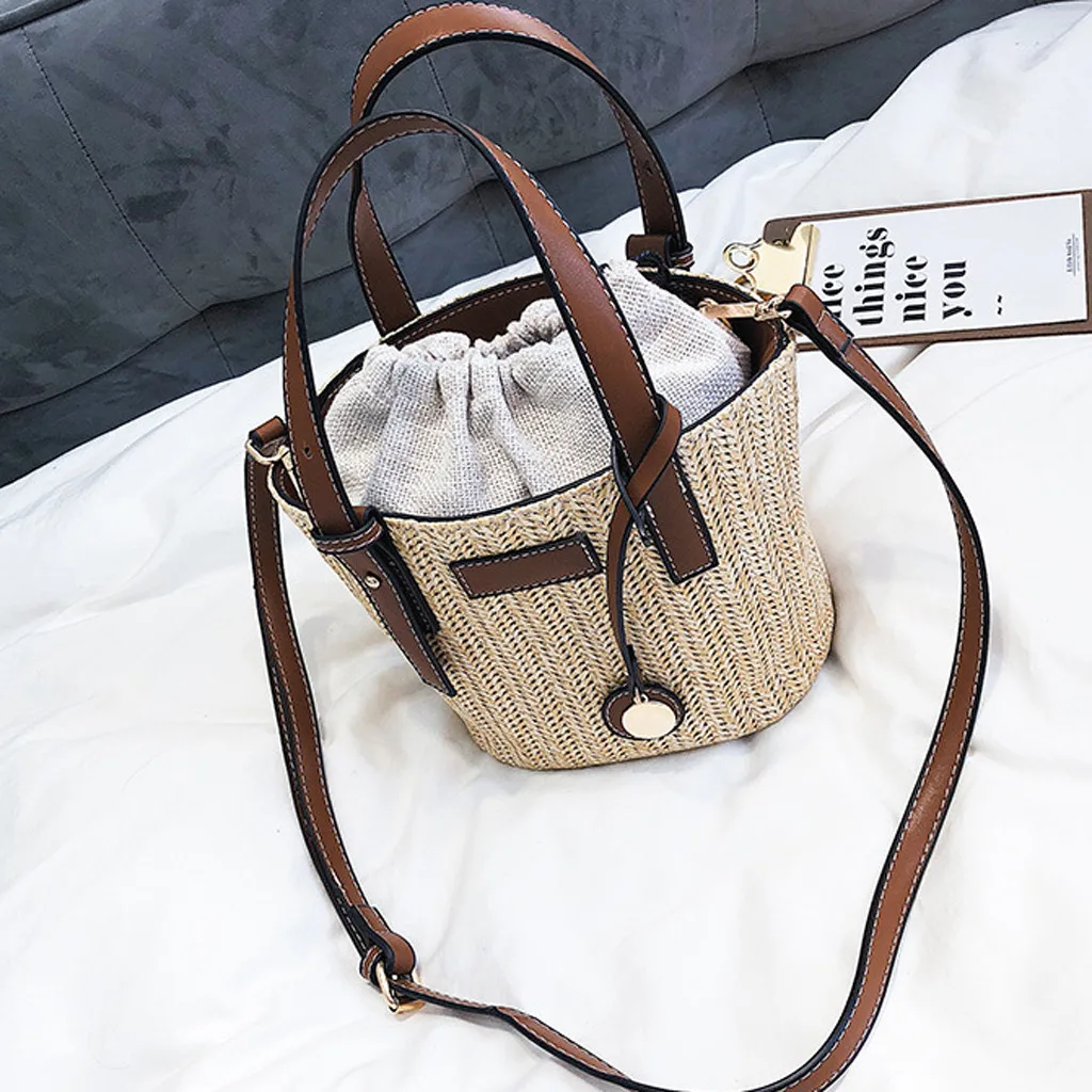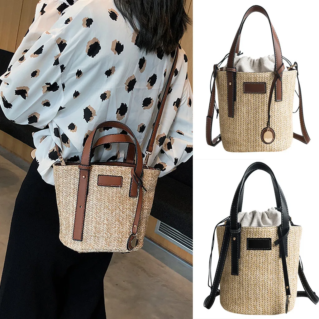 Женская пляжная соломенная плетеная Сумка через плечо, женская модная летняя сумка-ведро, ручная сумка