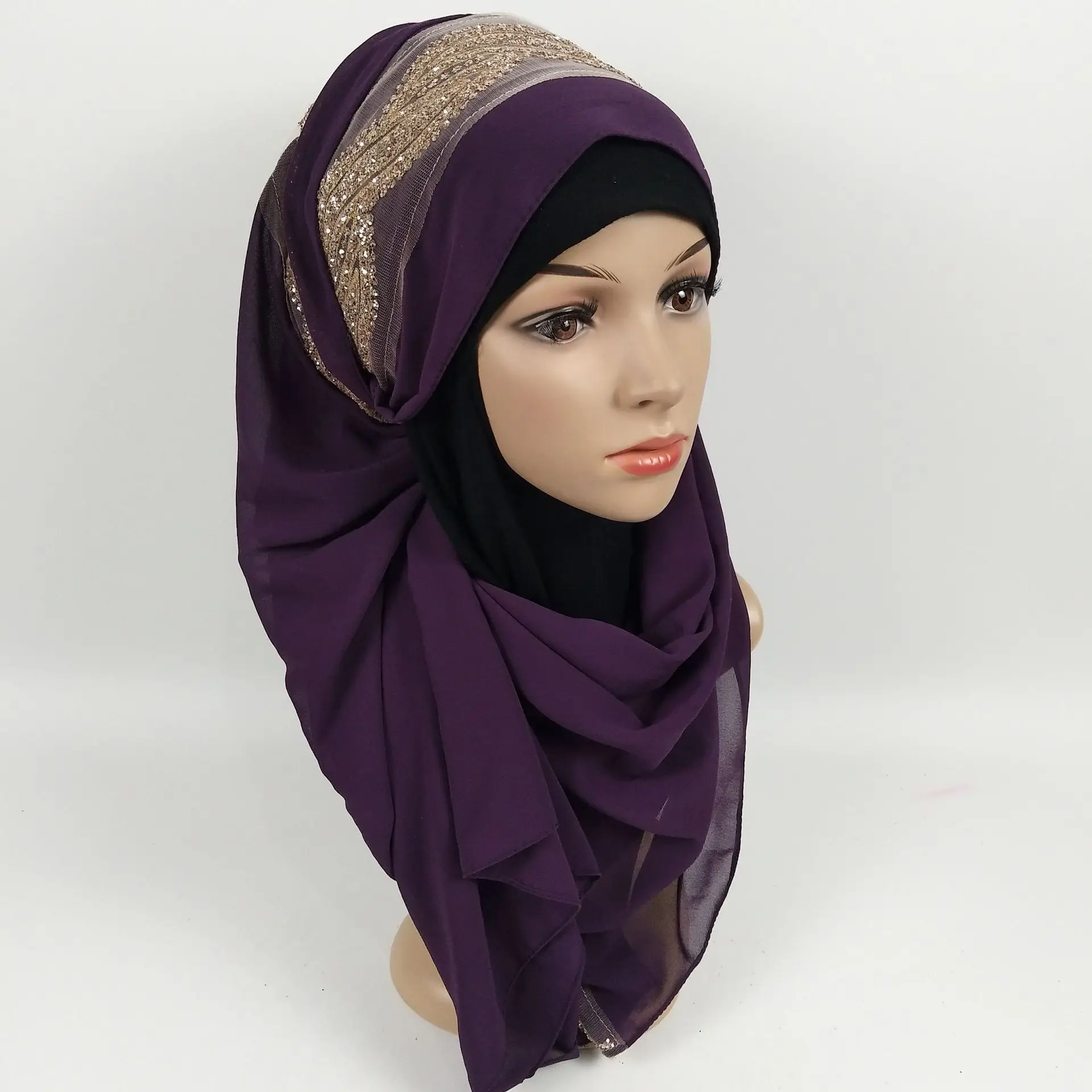 1 шт. Женская однотонная блестящая шифоновая Роскошная шаль глушитель повязка для головы хиджаб мусульманские шарфы покрытие