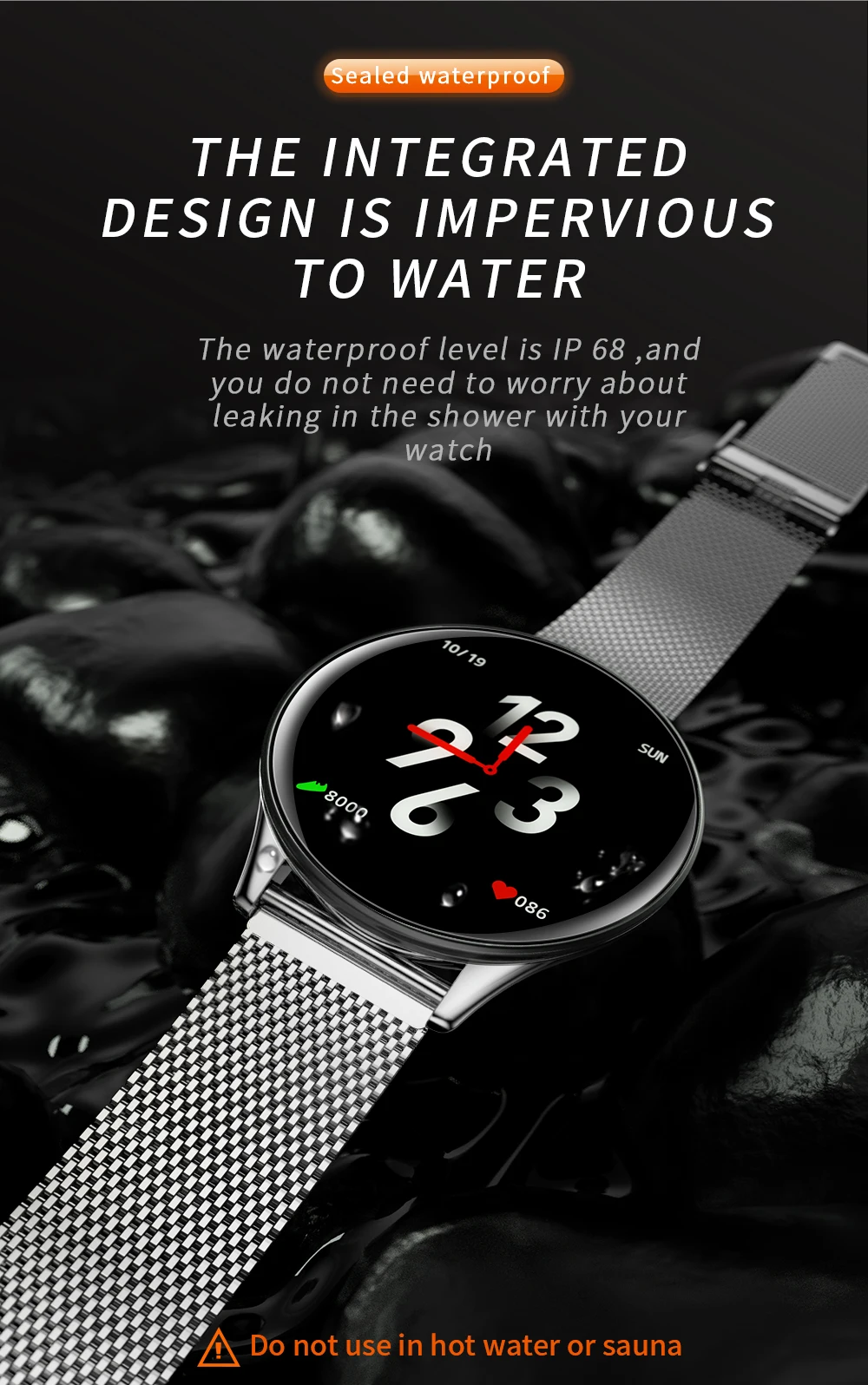 A10.вы можете носить его, чтобы плавать, он водонепроницаемый, но не может носить, чтобы принять душ, горячая вода поставляется с паром, он будет destory часы!