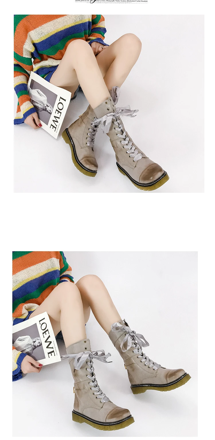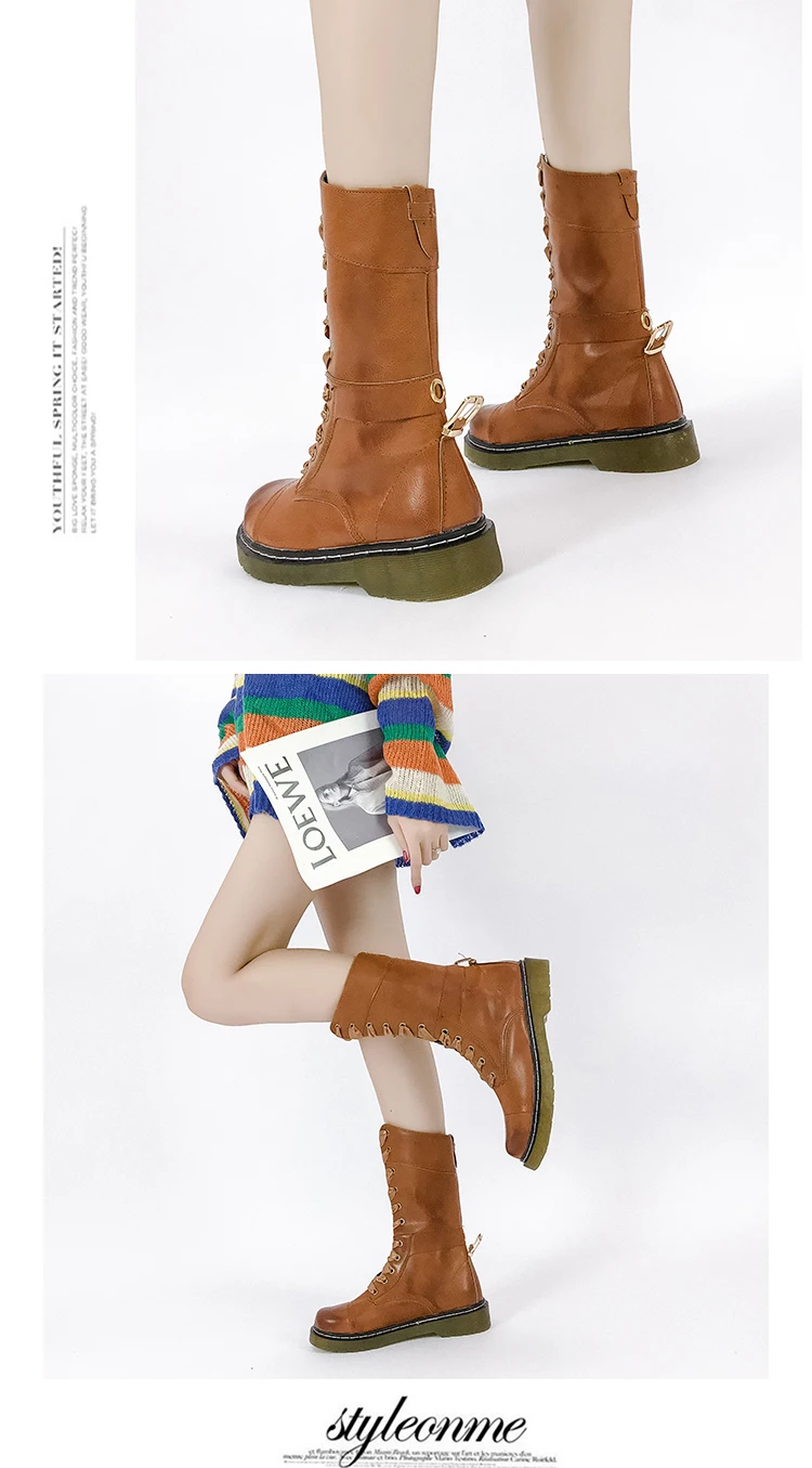 Брендовые новые женские Винтажные ботинки до середины икры в стиле милитари с
