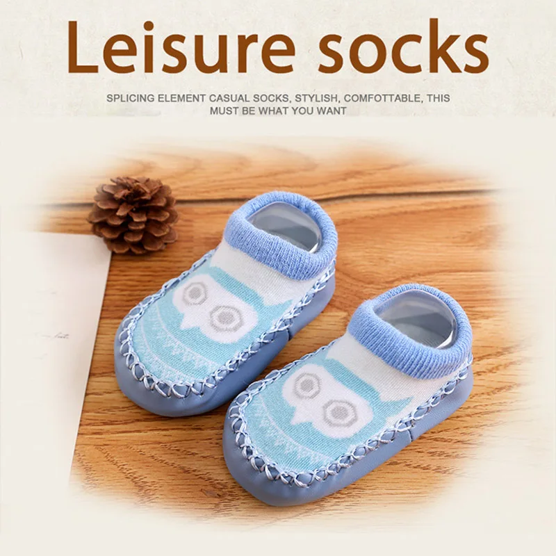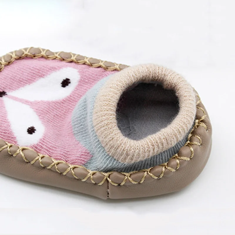 Детские носки с рисунками из мультфильмов; Нескользящие носки из чесаного хлопка из искусственной кожи для малышей; Плотные махровые носки для детей 0-3 лет; NBB0339