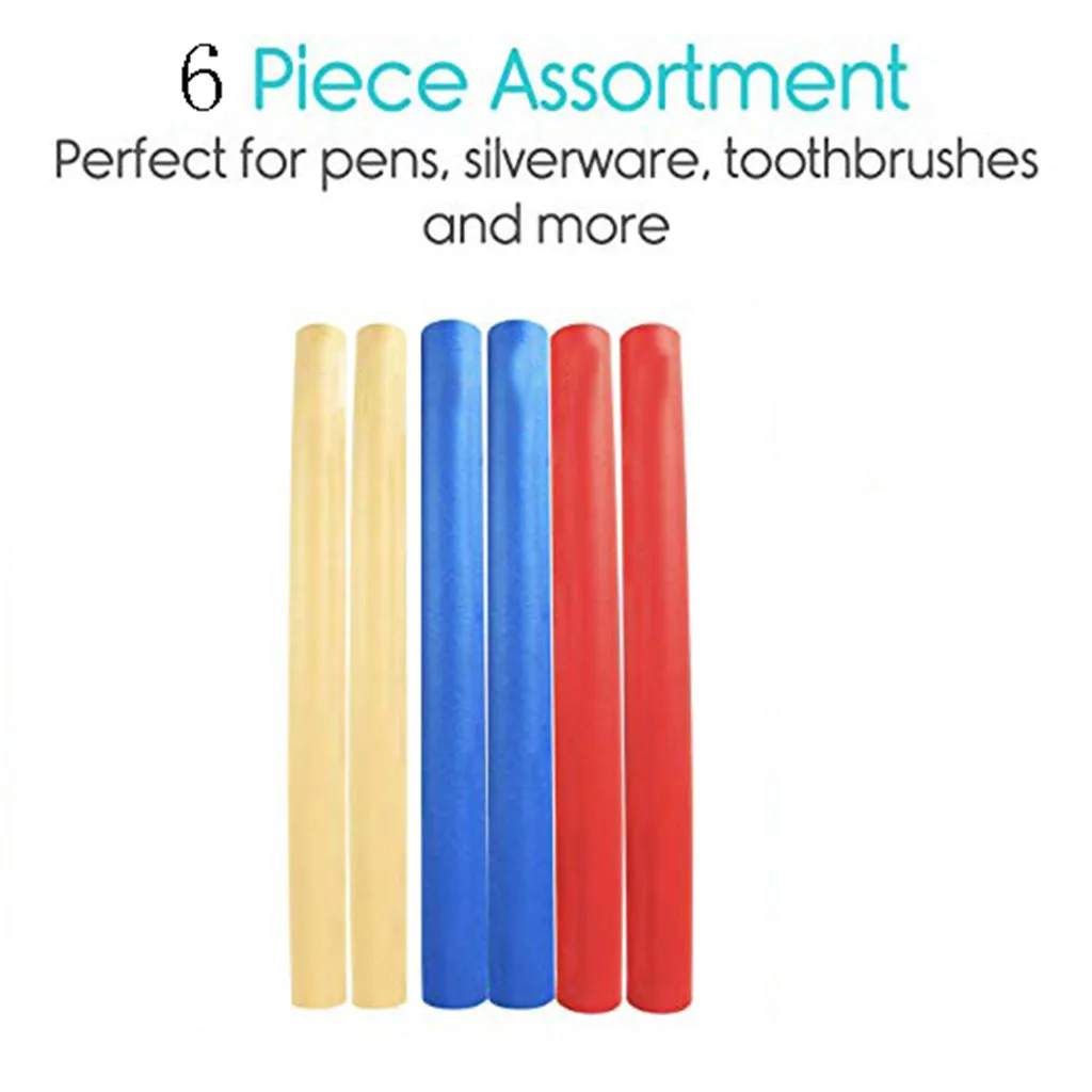 6 шт. ассортимент диаметров и цветов: упаковка содержит 6 штук труб. Синие пенопластовые трубки имеют диаметр 1,6 см и идеально подходят для ножей и более толстой посуды. Красные пенопластовые трубки 0,95 см и наиболее полезны для ложек и вилок. Самая маленькая трубка