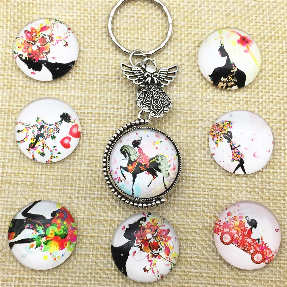 LJJAGLL модный цветок девушка автомобиль брелок лошадь цепочка для ключей с Девушкой кольцо стеклянный кабошон для кулона купола ювелирные изделия серебро сплав подарок брелок