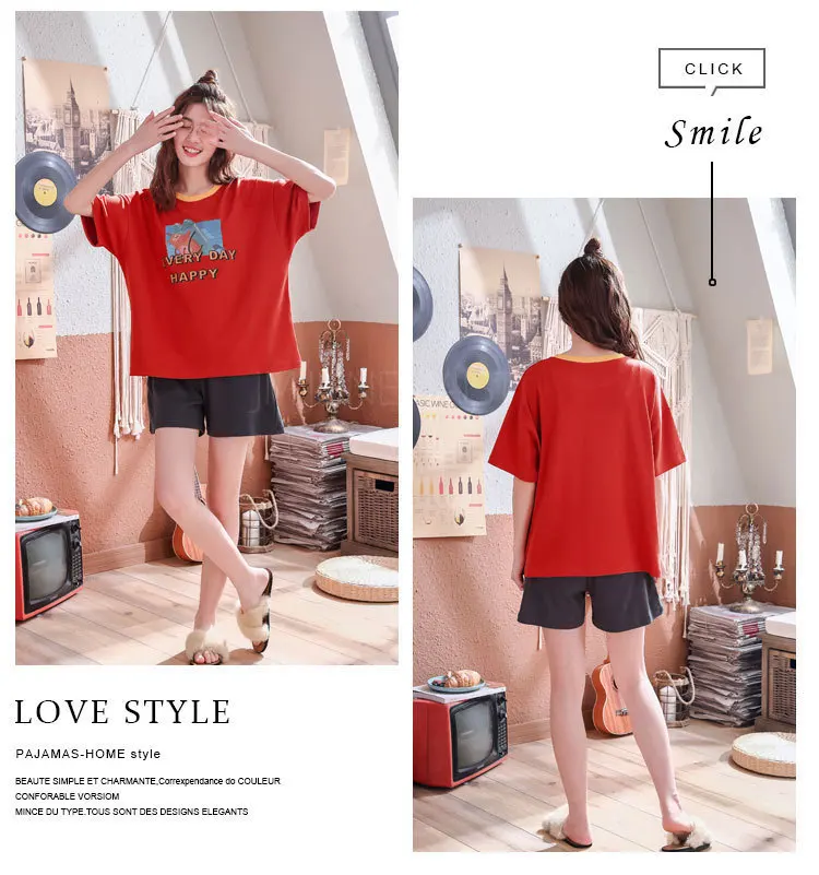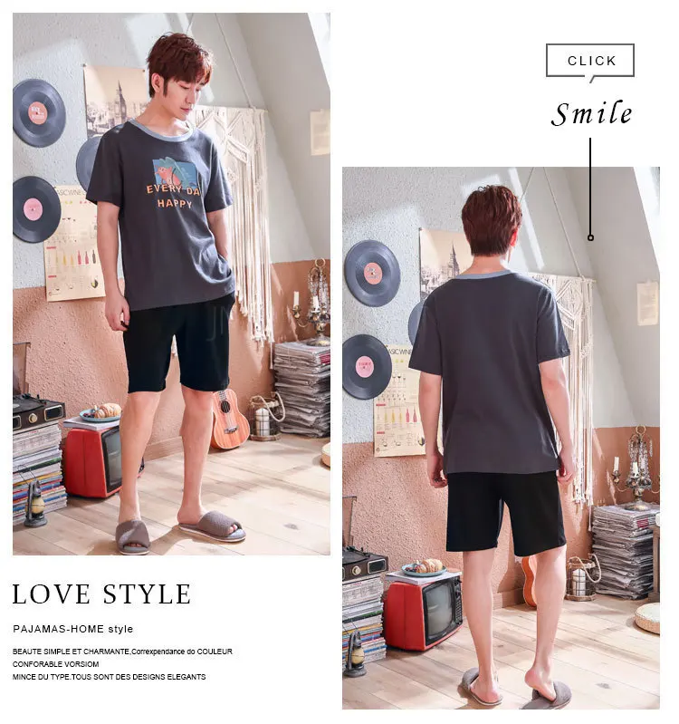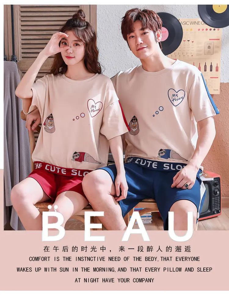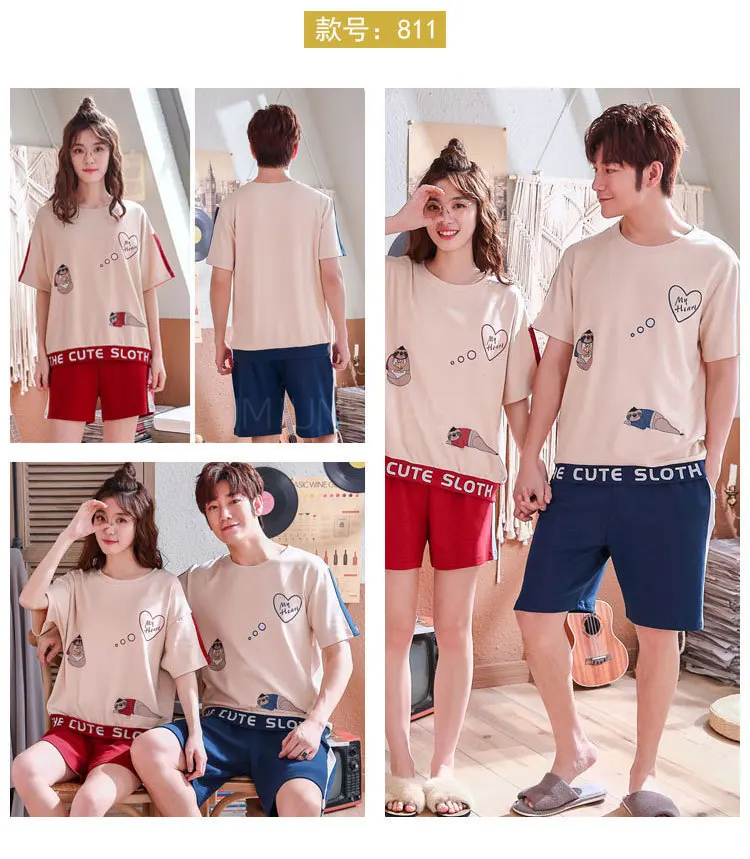 Женские и мужские хлопковые пижамы с коротким рукавом пижамный комплект