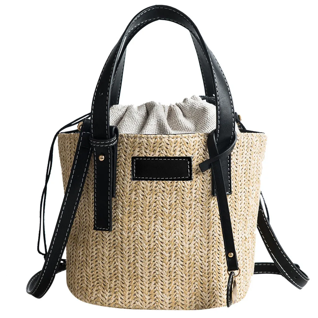 Женская пляжная соломенная плетеная Сумка через плечо, женская модная летняя сумка-ведро, ручная сумка