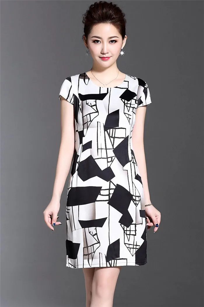 Шелковое платье Летняя женская одежда среднего возраста Сексуальное платье с принтом большого размера Офисное повседневное женское вечернее платье из шелка тутового шелкопряда 190