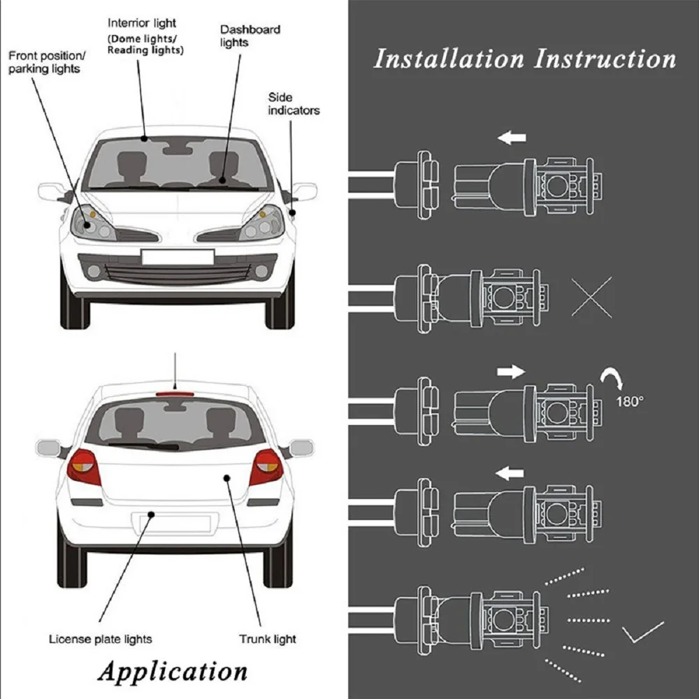 Подходит для большинства моделей автомобилей с разъемом T10 / T15 / 194 / 168 / 158 / 12256 / 12961 / 2821/W5W.