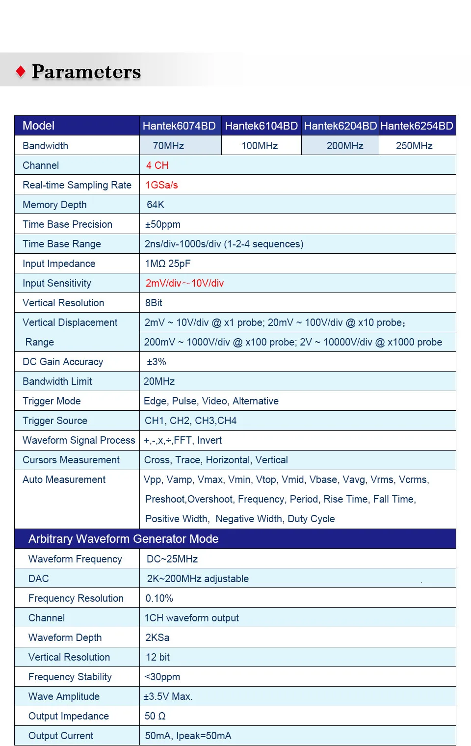 | Модель | Hantek6074BD/Hantek6104BD/Hantek6204BD/Hantek6254BD |