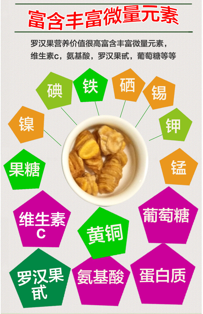 Momordica grosvenori-это Сладкая и крутая вещь, которая относится к меридианцам легких и толстой кишки. Оказывает эффект увлажнения легких, снимает кашель, генерирует жидкость для тела и останавливает жажду. Подходит для легочной Лихорадки или сухого кашля, коклюша, тепловых травм, жажды и так далее. Кроме того, он оказывает эффект увлажнения кишечника и расслабления кишечника.