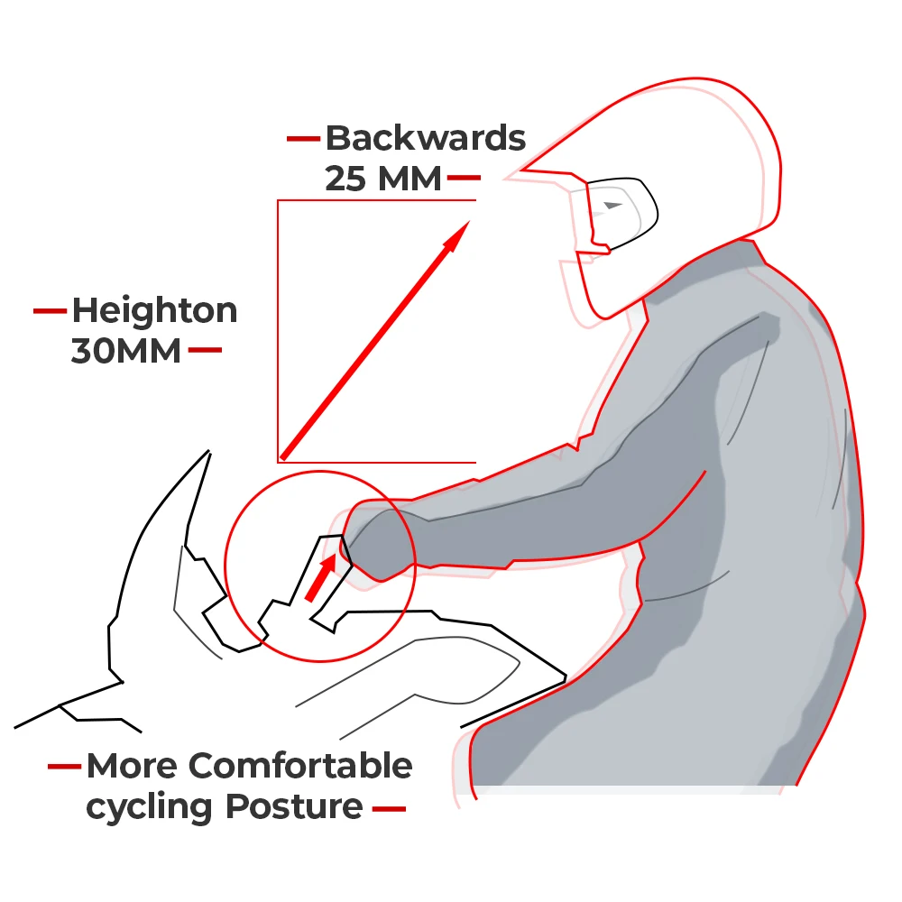 * CNC-обработанный из высокопрочного алюминиевого сплава, высококачественная, анодированная поверхность * Высота до 30 мм: делает всадника более комфортной осанкой езды на велосипеде и эффективно уменьшает усталость езды на большие расстояния * Поверните назад 25 мм: Улучшите маневренность мотоцикла и Увеличьте чувствительность рулевого управления * Легко установить без инструкции * Не требуется расширение кабеля bowden