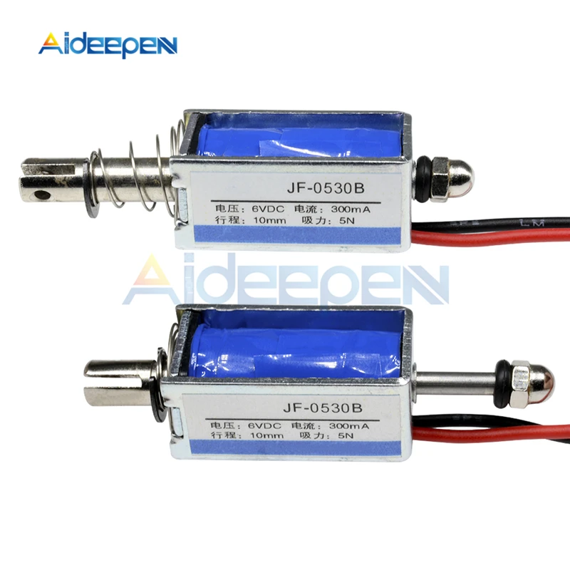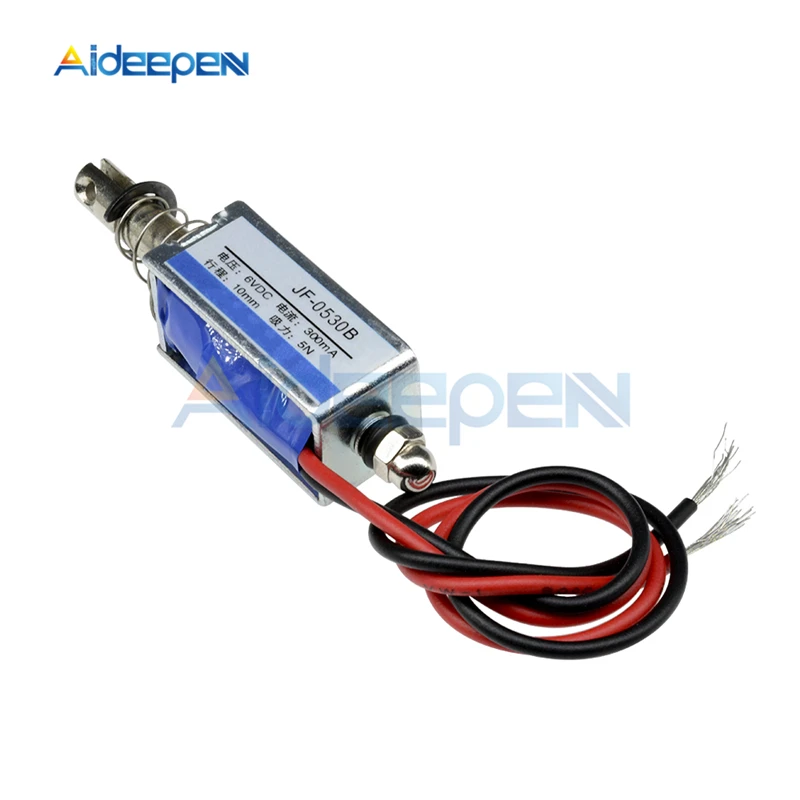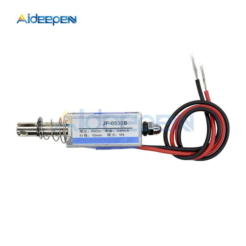 Напряжение: 6 В/12 В/24 В постоянного токаТок: 300 мАВсасывание: 5NДиапазон: 10 ммРазмер: 13*16,5*30Посылка включает в себя:1 x JF-0530B Электромагнит с нажимом и тягой
