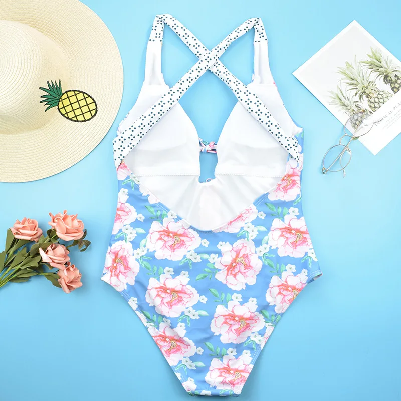 Летняя пляжная одежда тропический винтажный принт на молнии крест бандаж сзади Монокини Цельный купальник