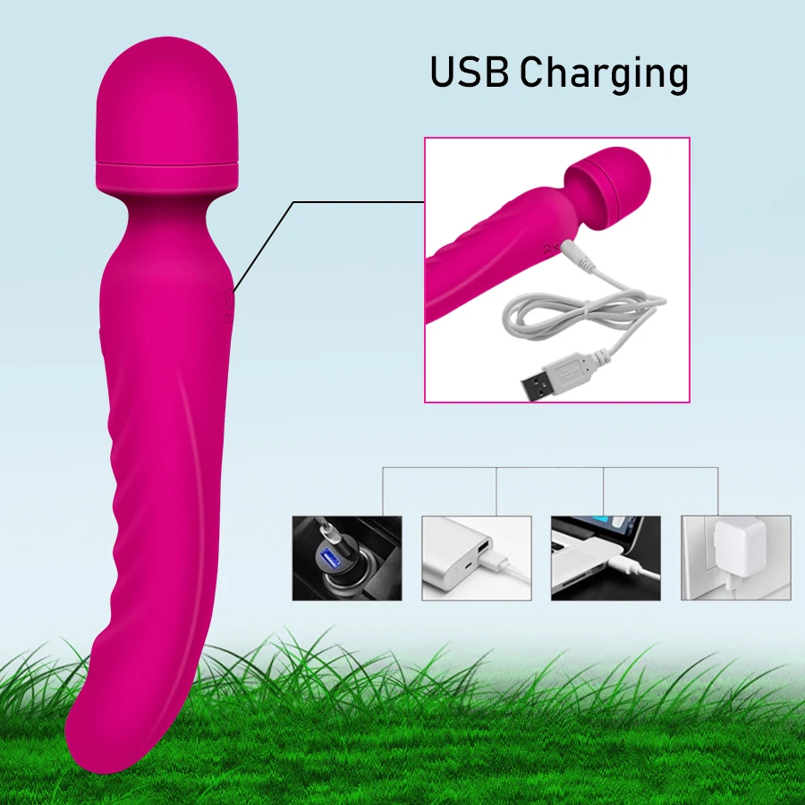FLXUR нагревательный вибратор AV в виде волшебной палочки для женщин двойной вибратор силиконовый фаллоимитатор Вагина Массажер для тела точка G Клитор Стимулировать Секс-игрушки
