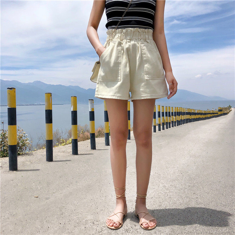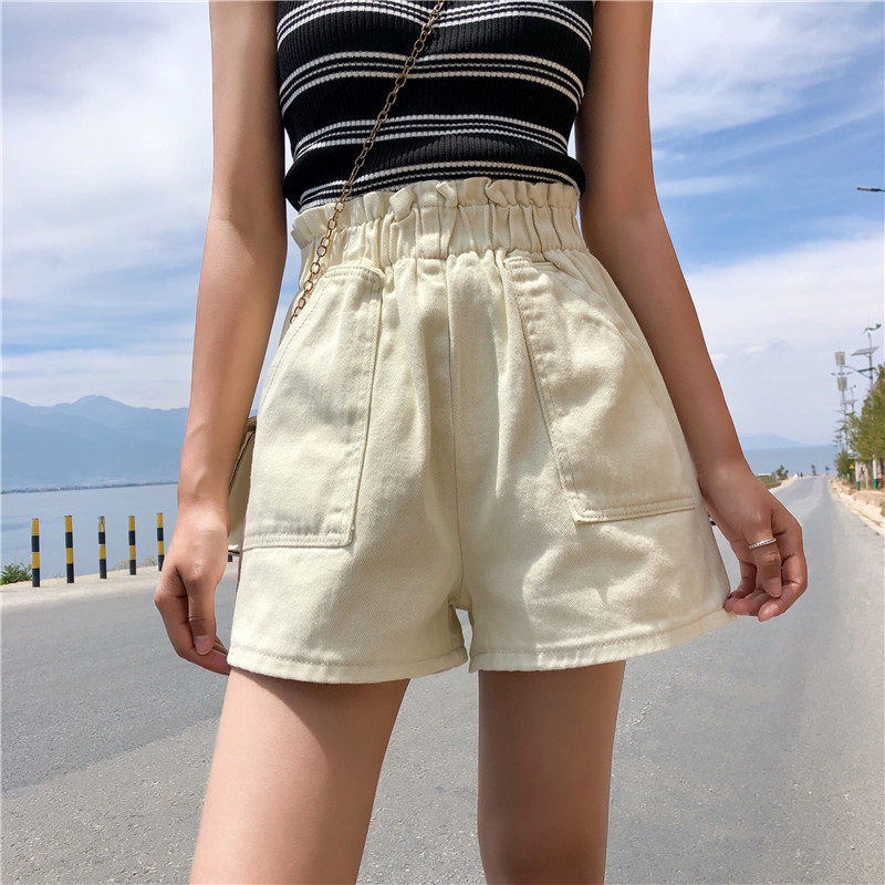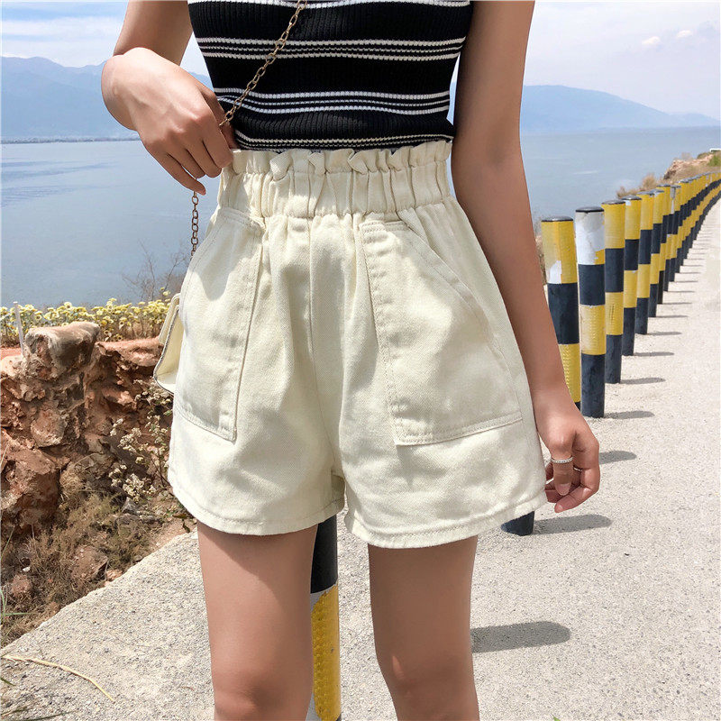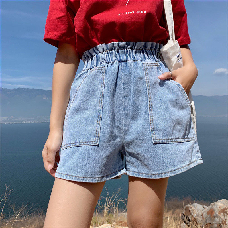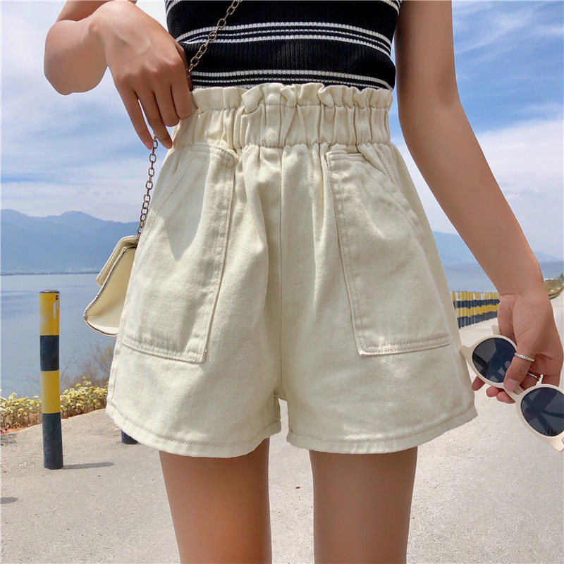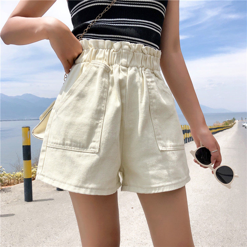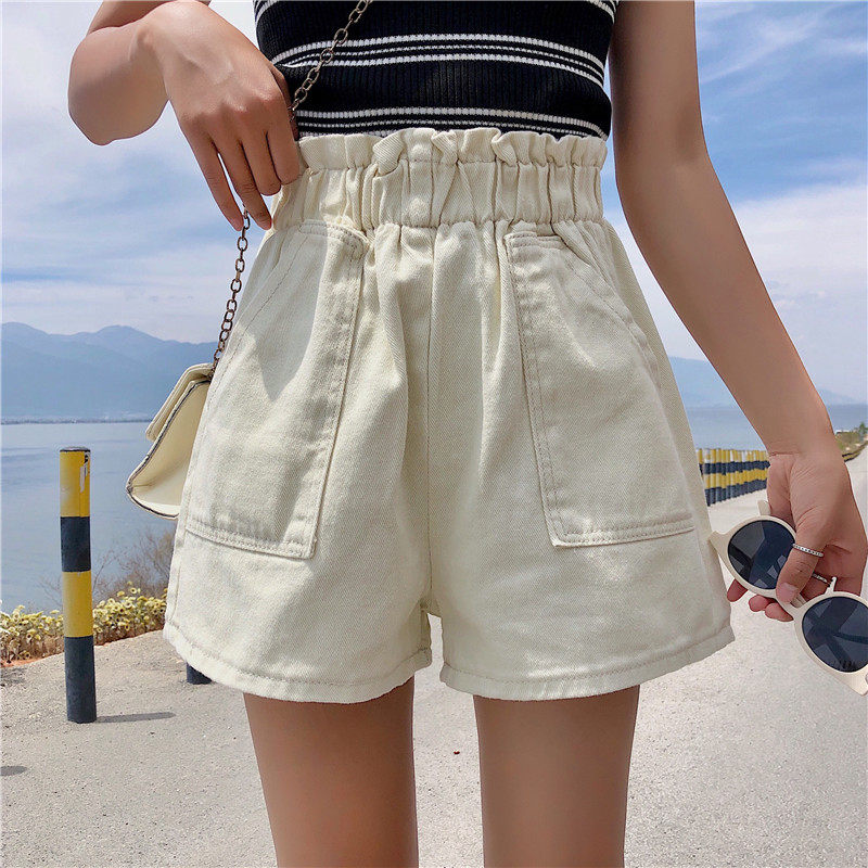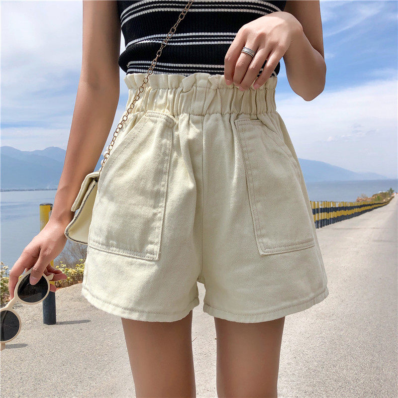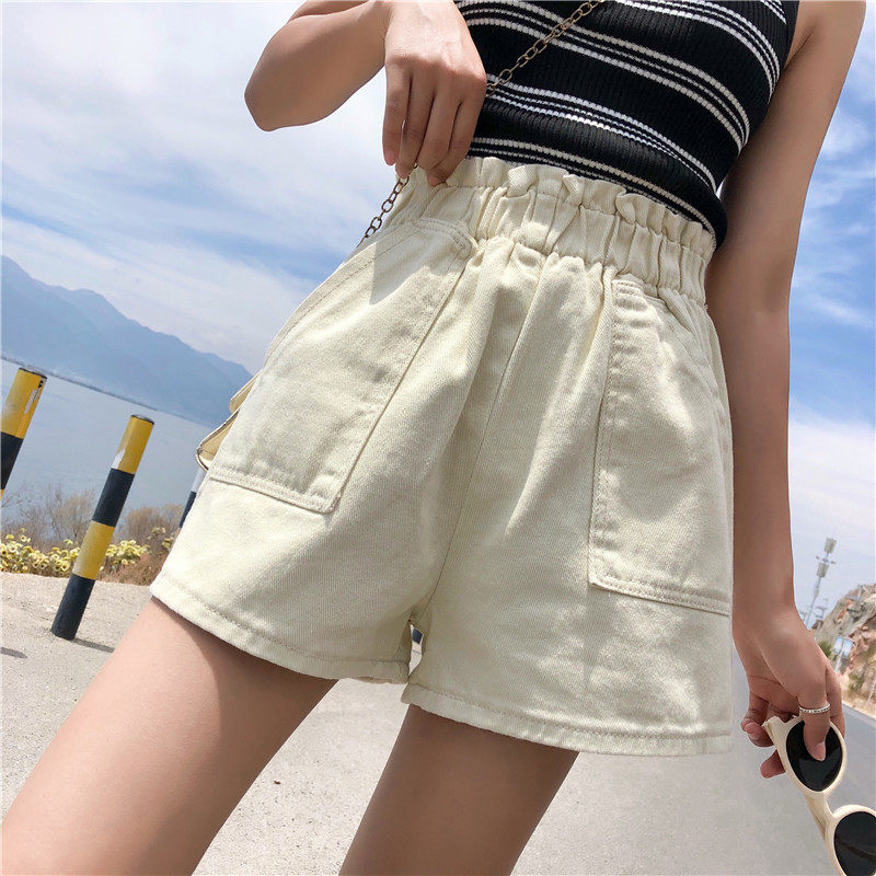 2 цвета S-XL уличная лето для женщин джинсовые шорты 2019 высокая эластичная талия широкие джинсы синий бежевый короткие Femme