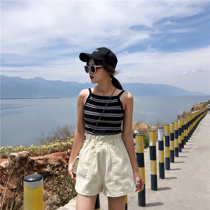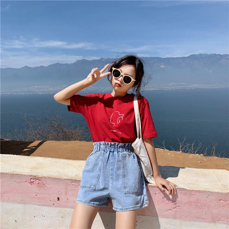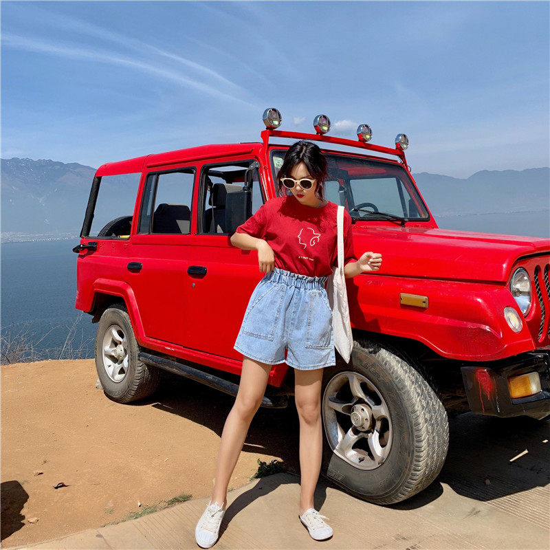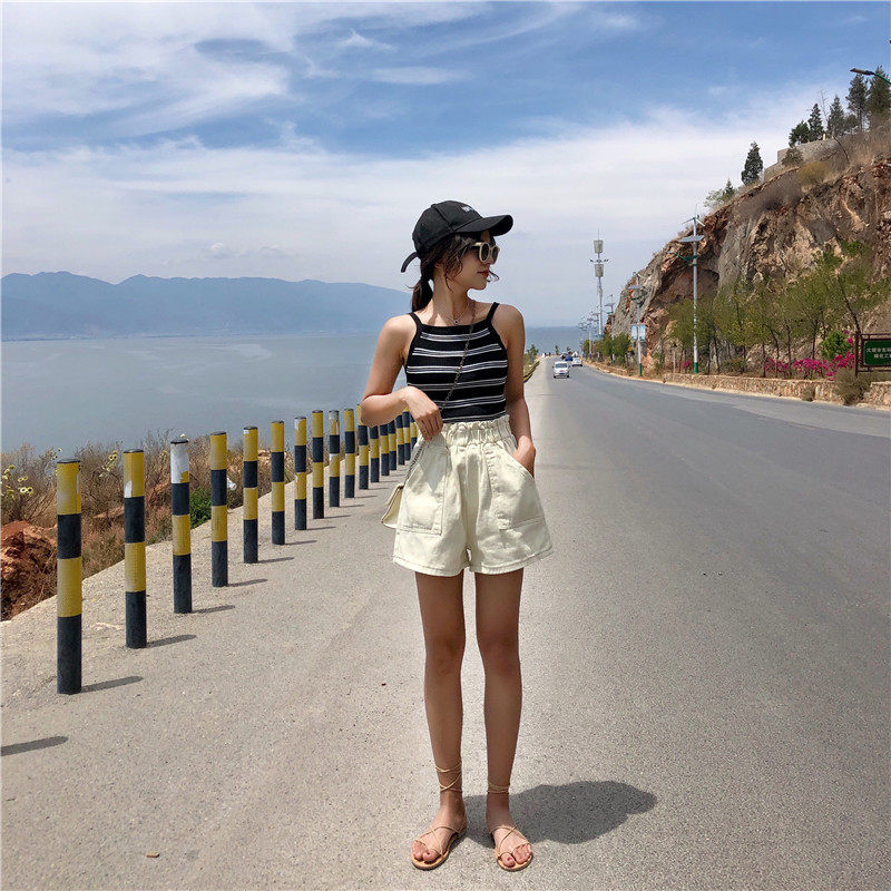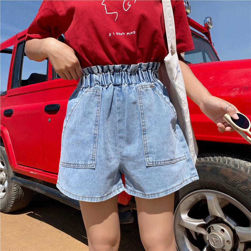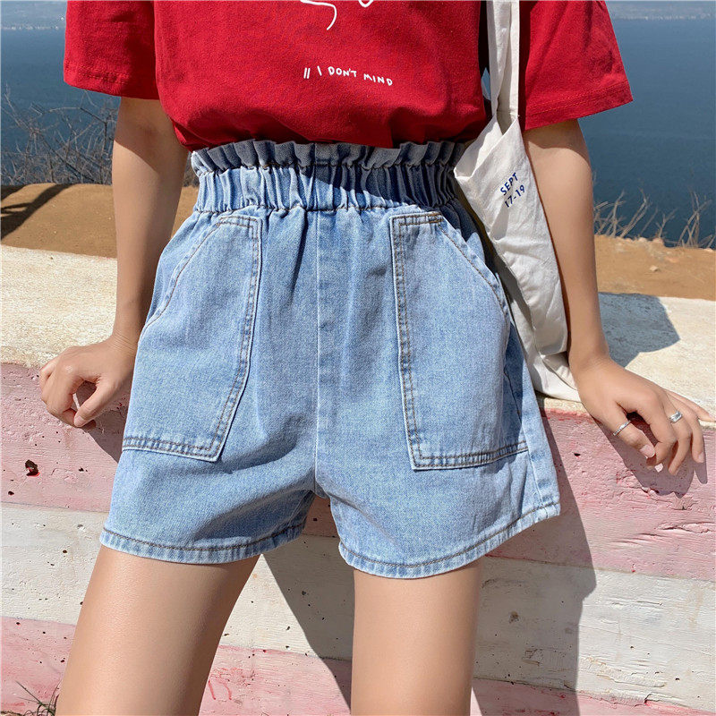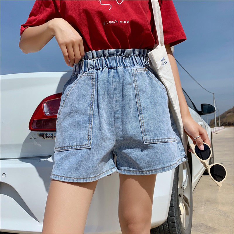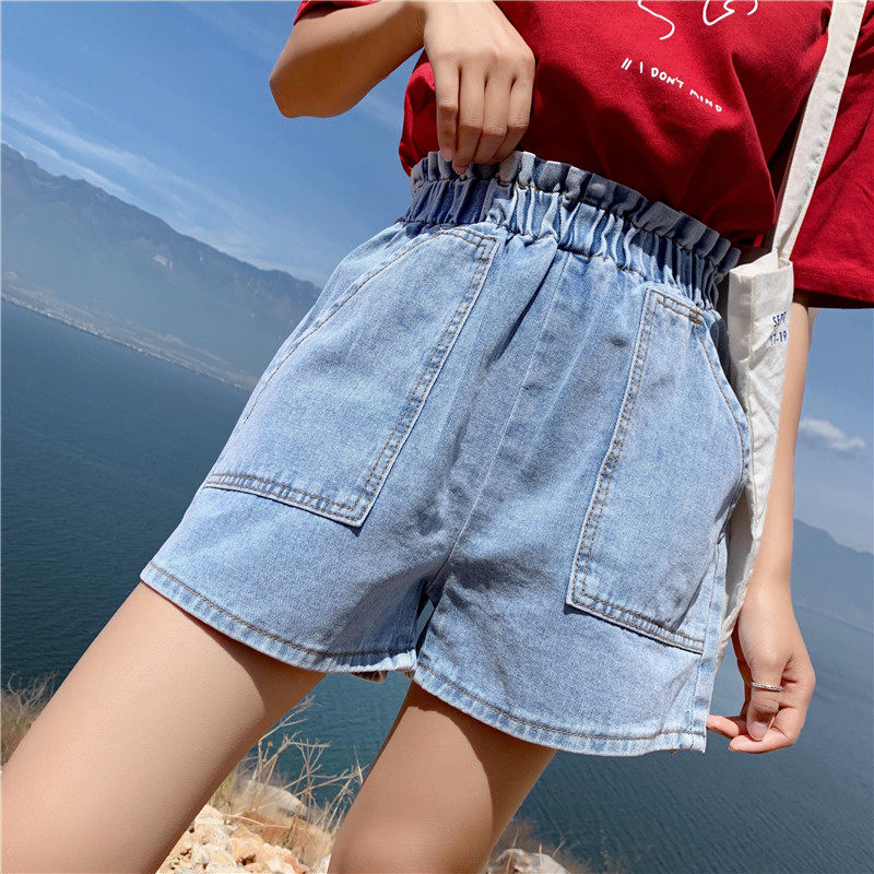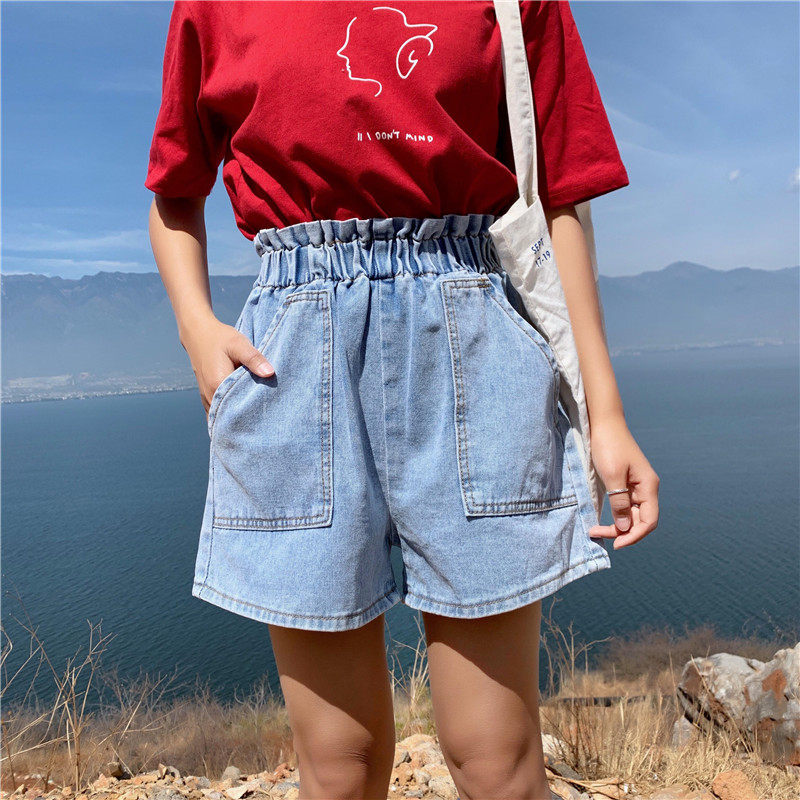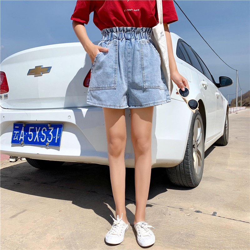 2 цвета S-XL уличная лето для женщин джинсовые шорты 2019 высокая эластичная талия широкие джинсы синий бежевый короткие Femme