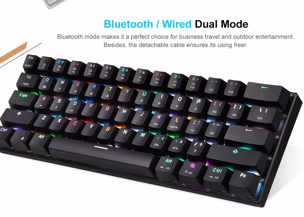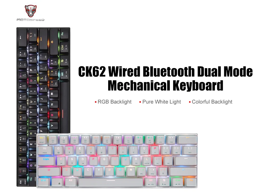MOTOSPEED CK62 клавиатура Проводная/Bluetooth клавиатура с двойным режимом механическая клавиатура 61 клавиша RGB светодиодный подсветка игровая клавиатура