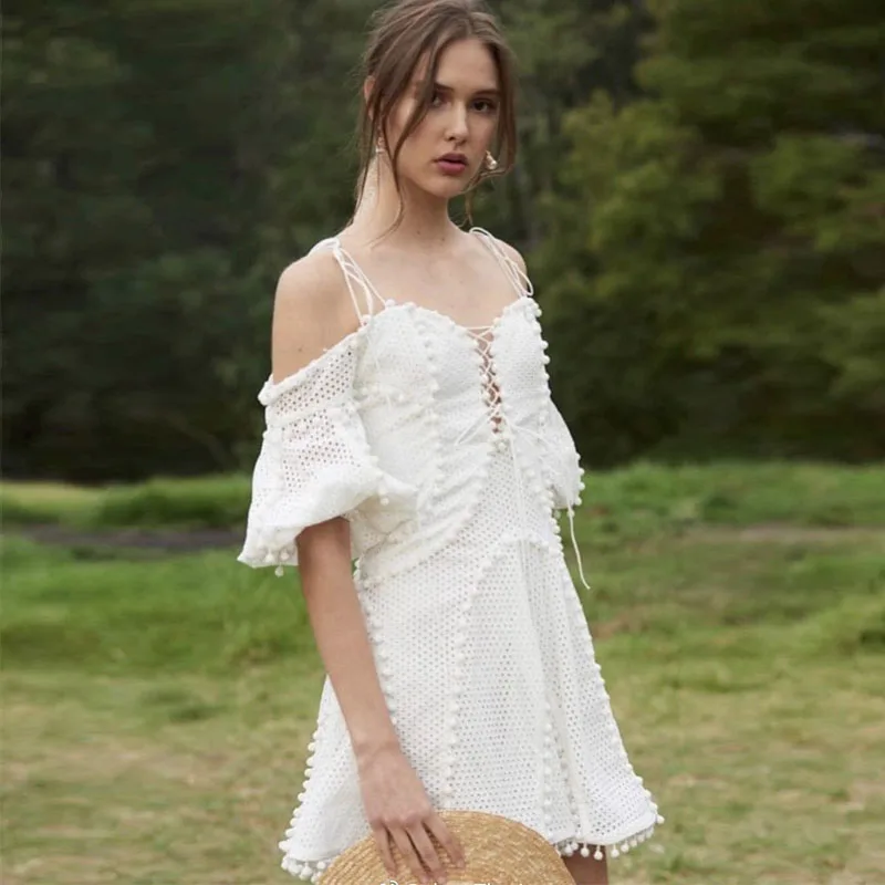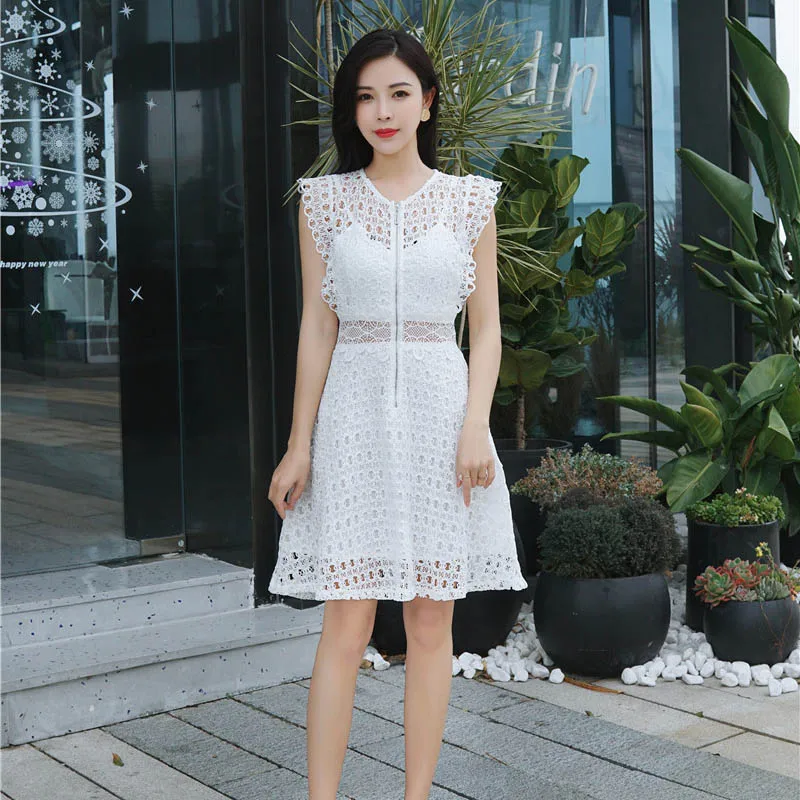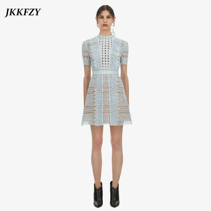 Дизайнерское подиумное повседневное кружевное платье для женщин, белое мини-платье трапециевидной формы с круглым вырезом и коротким рукавом, роскошное высококачественное элегантное платье Vestidos