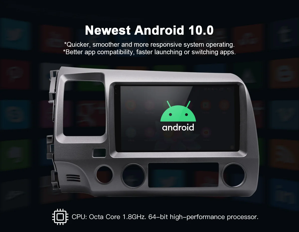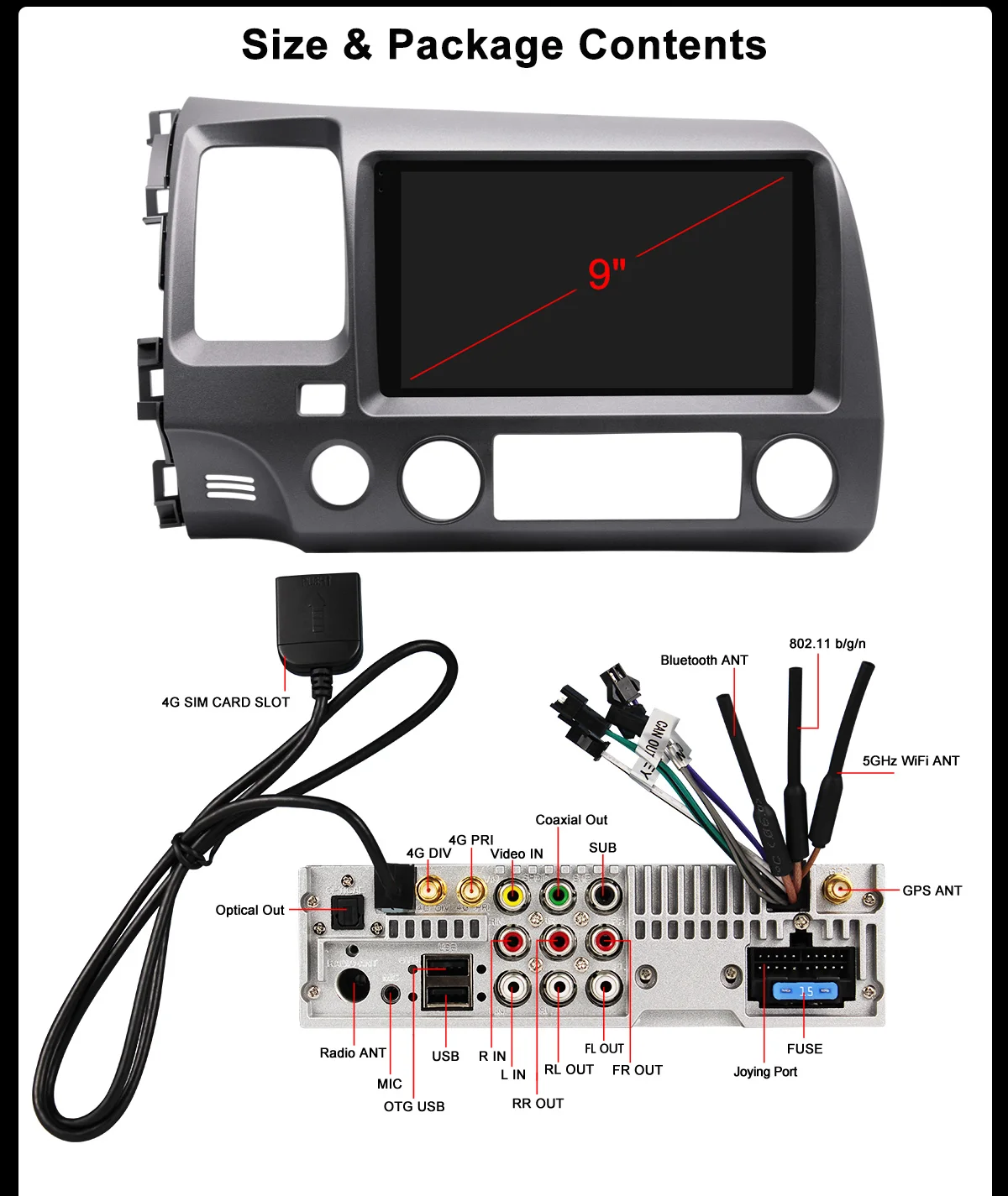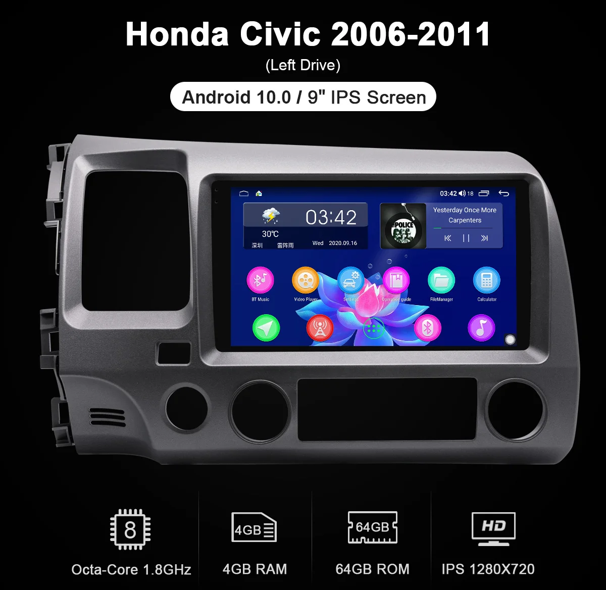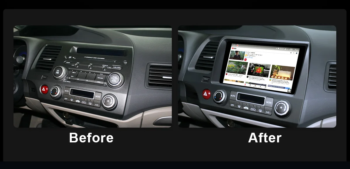 Это 9 дюймов продукт для Honda Civic 2006-2011, в том случае, если вы не уверены, что он может соответствовать вашему автомобилю, пожалуйста, покажите свой автомобиль приборной панели для нас.