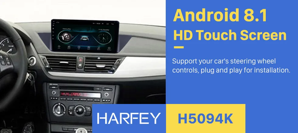 Harfey Android 8,110,1 дюймовДляBMW X1 E84 2009 2010 2011 2012 2013Радио обновление HD 1024*600 сенсорный экран АвторадиоGps навигация Зеркало Ссылка wifi OBDII DVR HD 1080 P видео