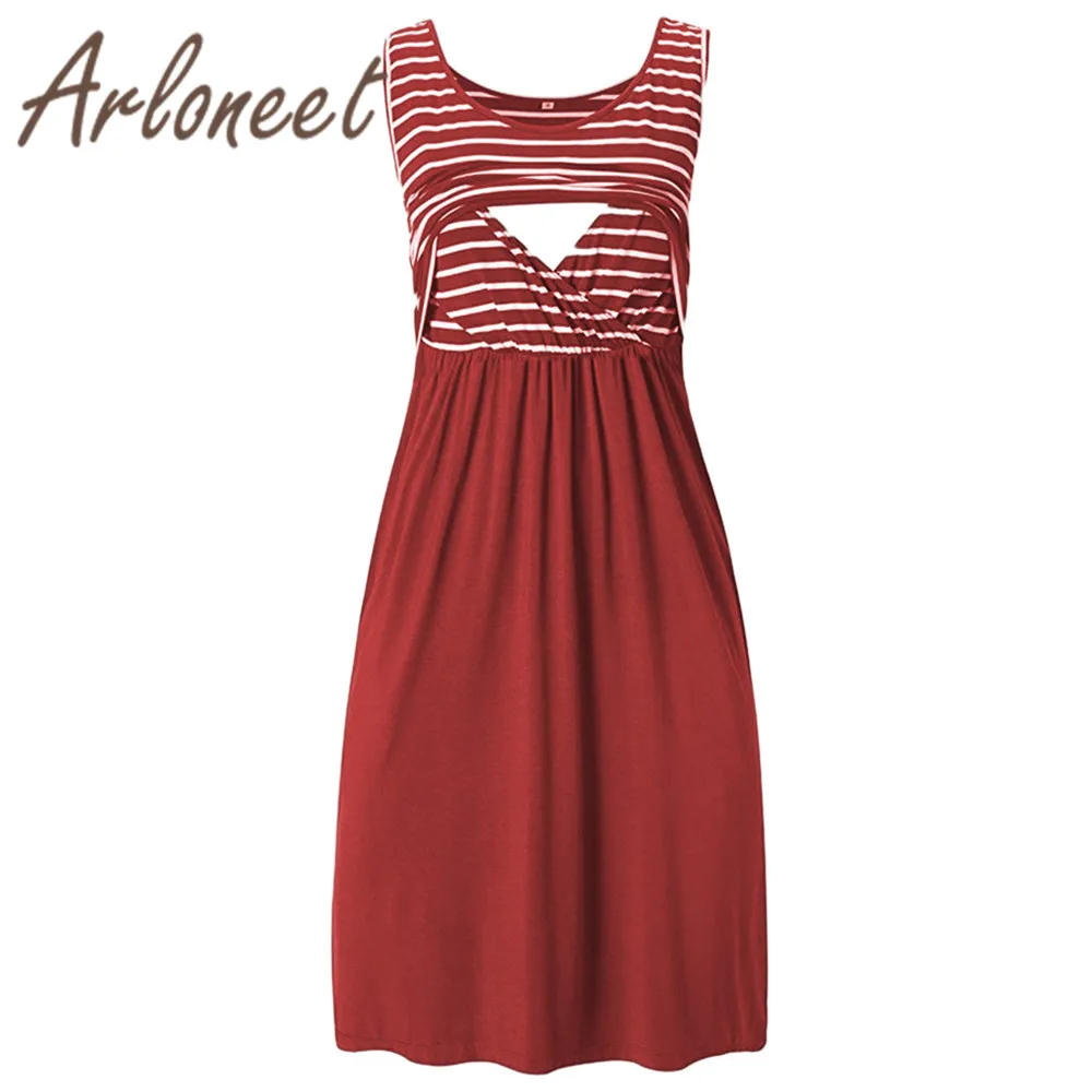 ARLONEET Clothes elegant women maternity dress Cotton Striped Breastfeeding dress 2019 Summer ladies pregnanct sundress Vestidos