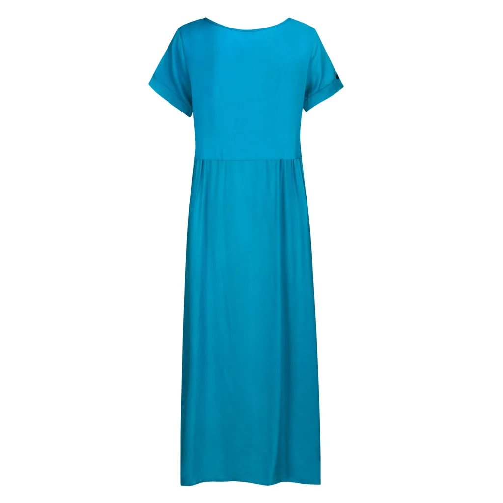 Женское повседневное однотонное платье с v-образным вырезом на пуговицах