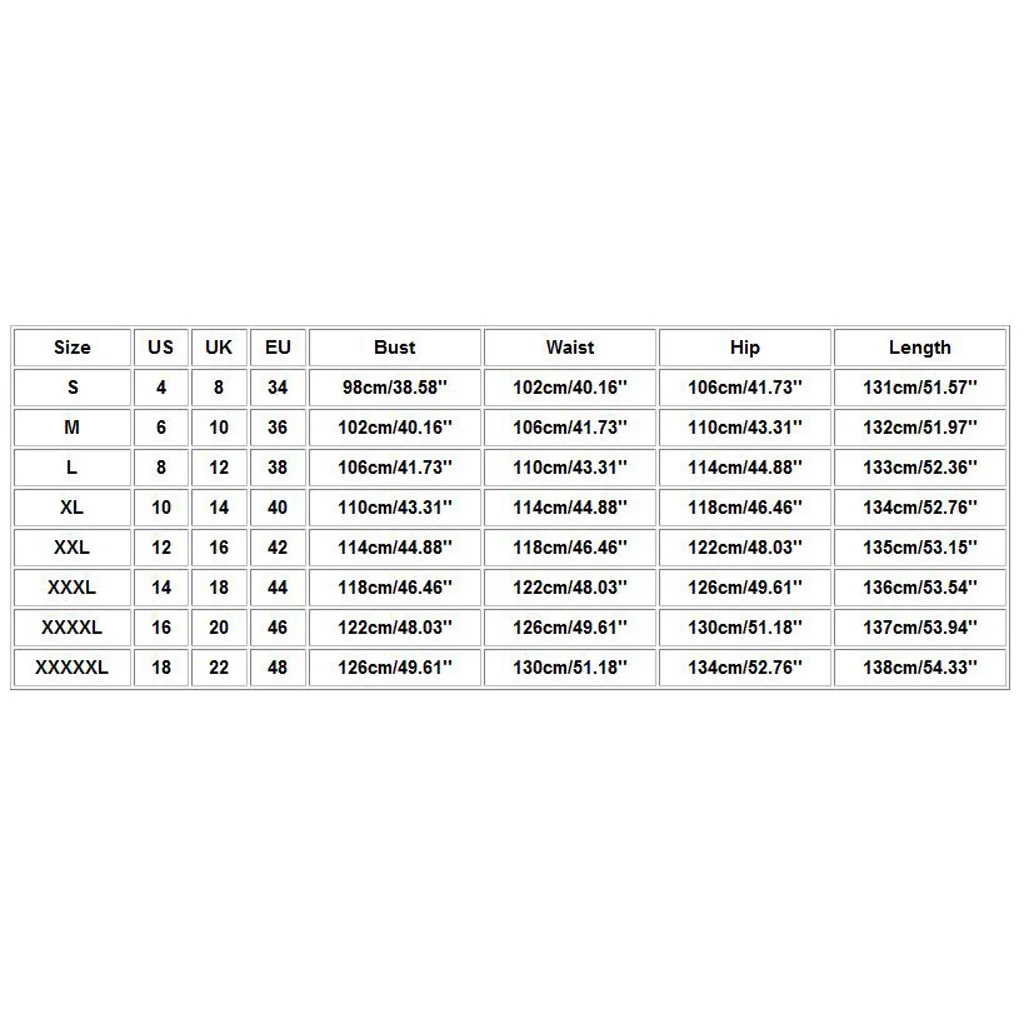| XXXXXL | 18 | 22 | 48 | 126 см/49,61'' | 130 см/51,18'' | 134 см/52,76'' | 138 см/54,33'' |