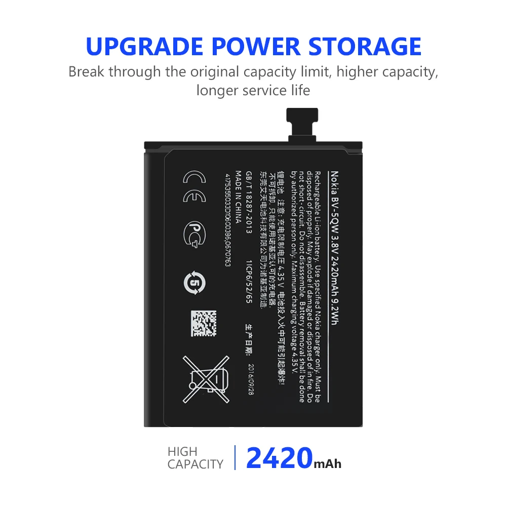 С большой емкостью 2420 мА · ч, меньше беспокойтесь о том, что ваш сотовый телефон будет мертвым в течение короткого времени.
