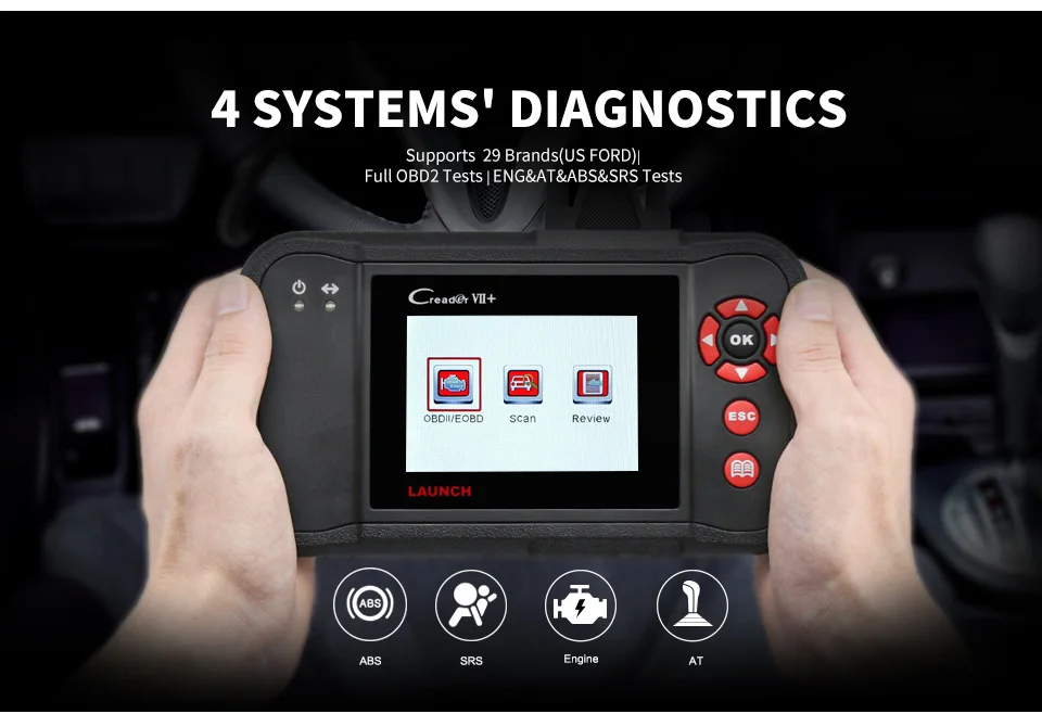 LAUNCH Creader VII + диагностический инструмент для сканирования Авто считыватель кодов автомобиля с полным OBD2 функциями и двигателем/трансмиссия/ABS/SRS диагностики
