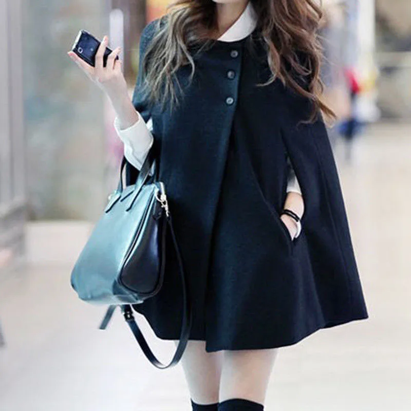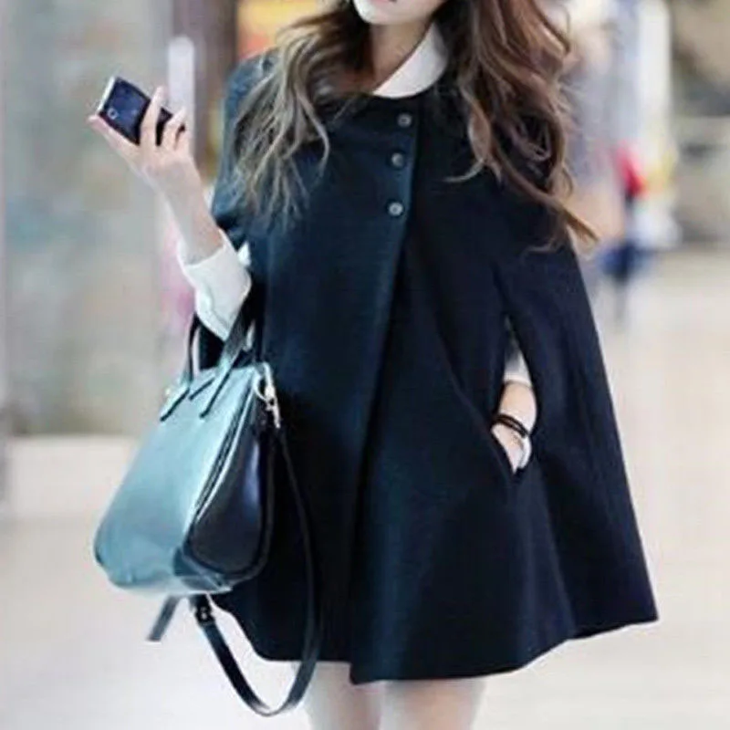 * Описание товара:Женское свободное шерстяное пончо, зимнее теплое пальто, куртка, плащ, плащ-парка, верхняя одежда
