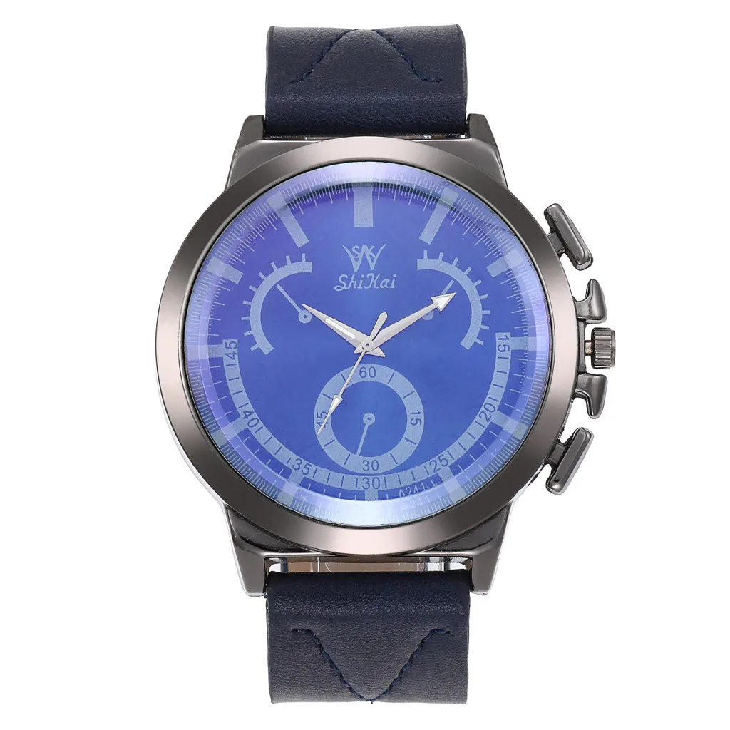 Роскошные мужские часы, бизнес часы с большим циферблатом, модные кварцевые часы с кожаным ремешком