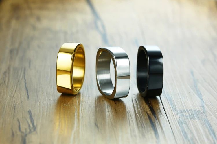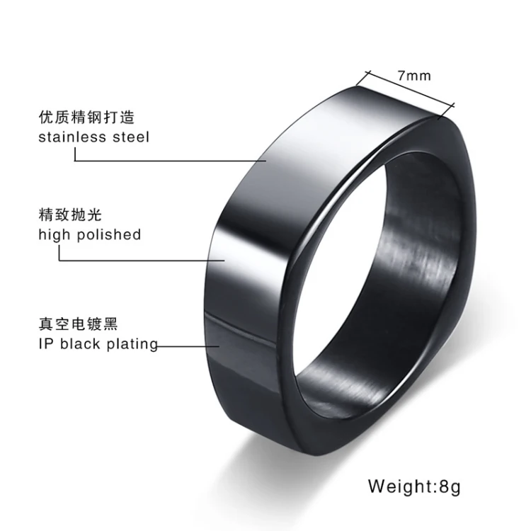 Цвета: серебристый/золотой/черный/серый Форма: квадратная Материал колец: нержавеющая сталь 316L Размер одежды: американский стандарт 7, 8, 9, 10, 11, 12